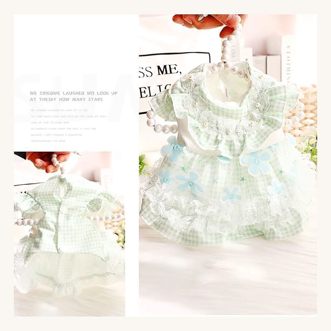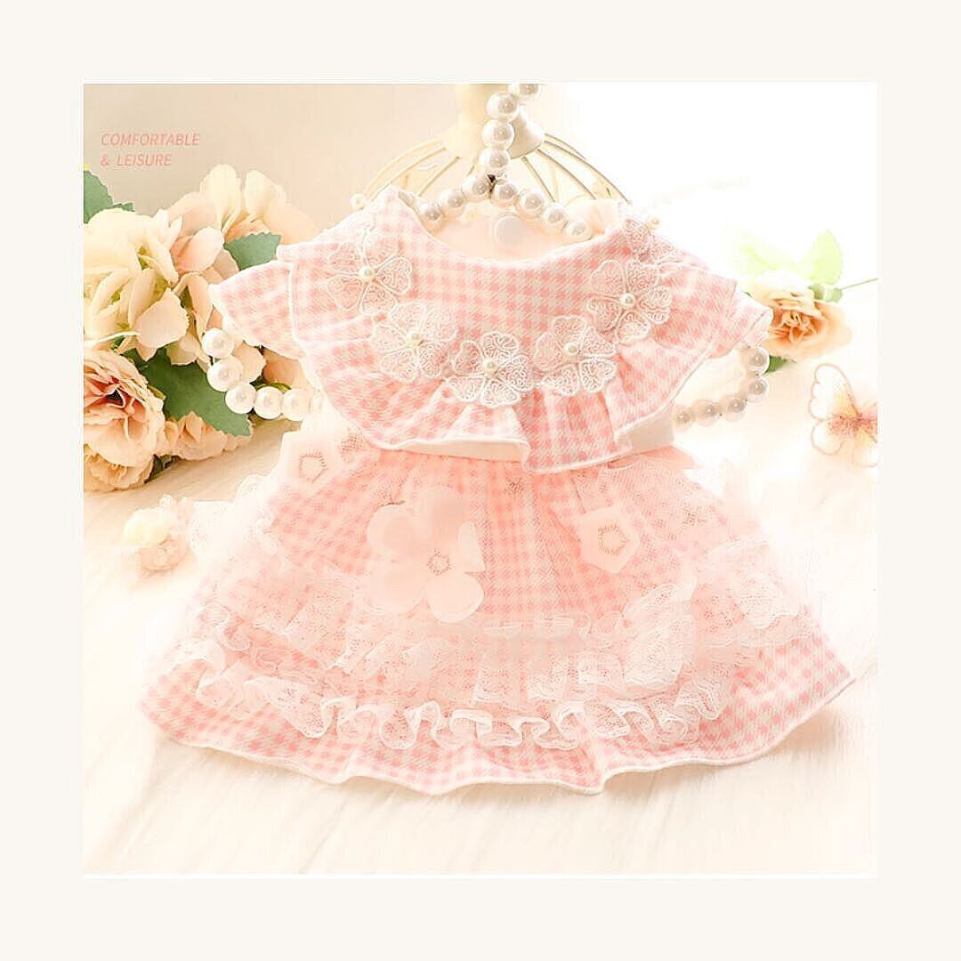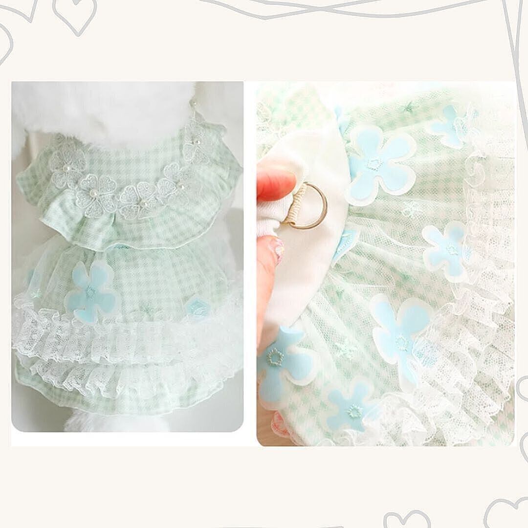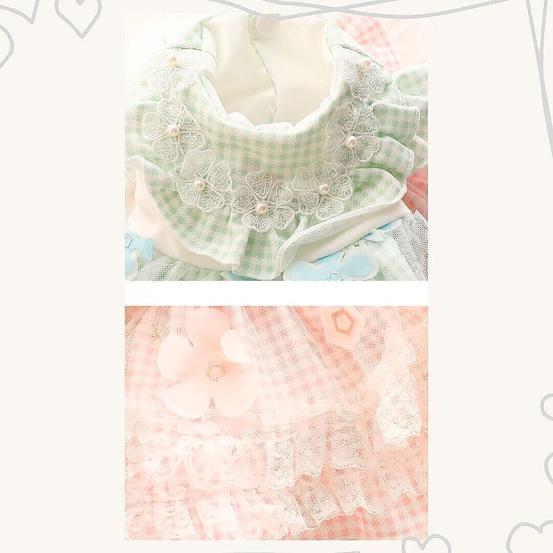 予約【№B04597】フラワーモチーフ ギンガムチェック柄 フリルワンピ リード取り付け金具付き(2カラー)