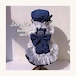 予約【№B00762-2】ドットデニム&レースフリル ストラップワンピ ベレー帽付き