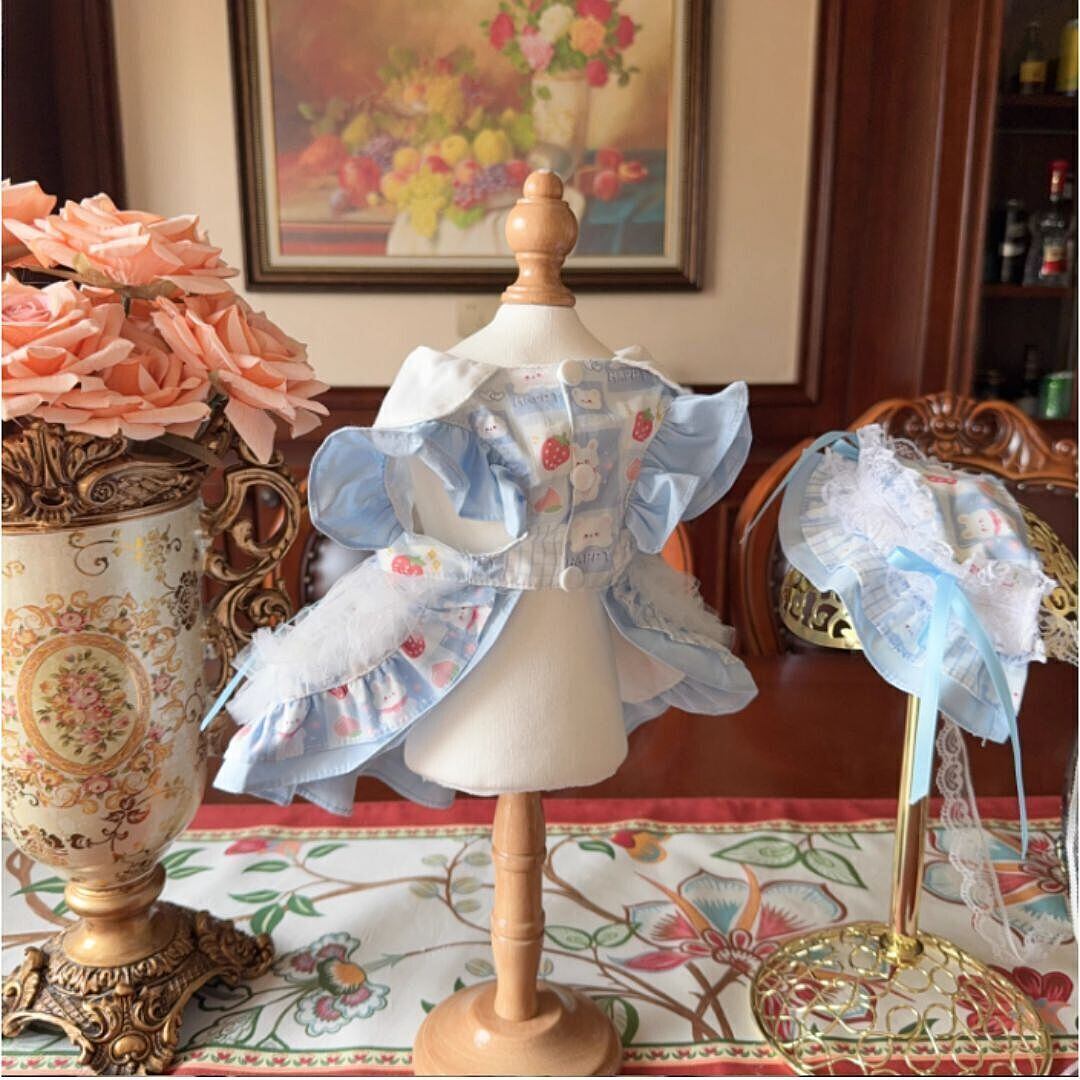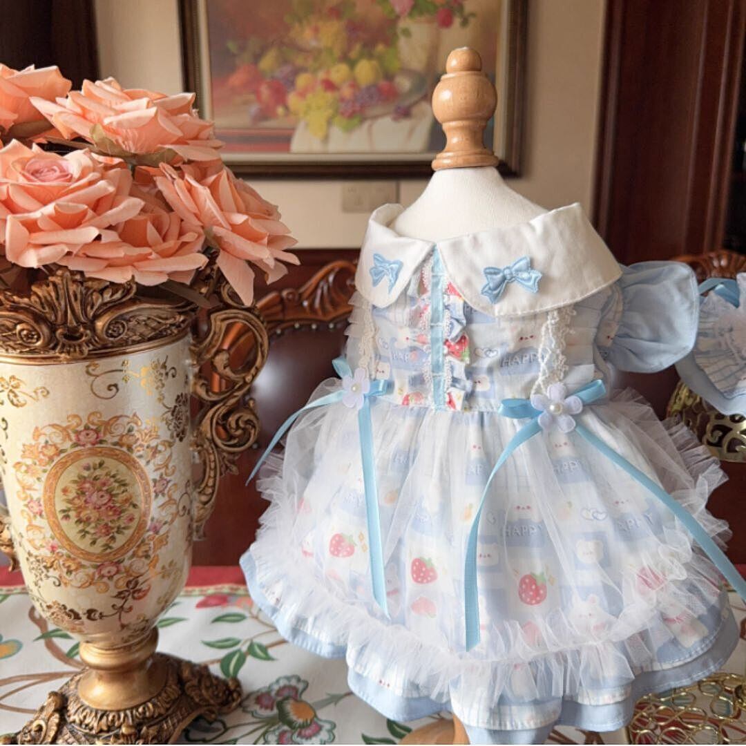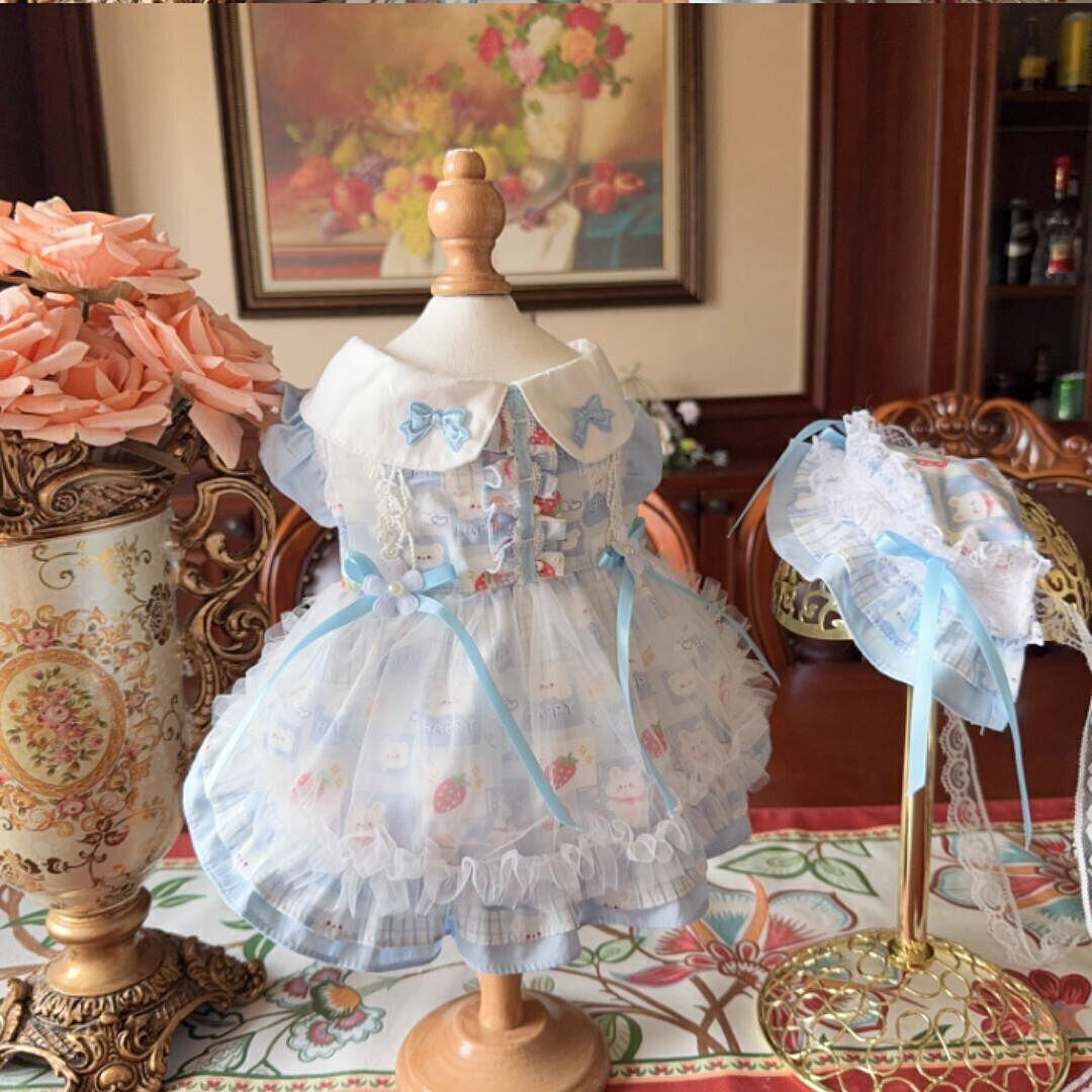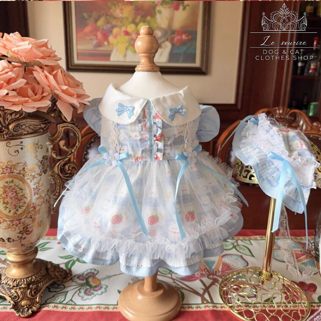 予約【№B05280】丸襟 わんこ&苺柄 キュート ドレスワンピ(帽子:オプション)