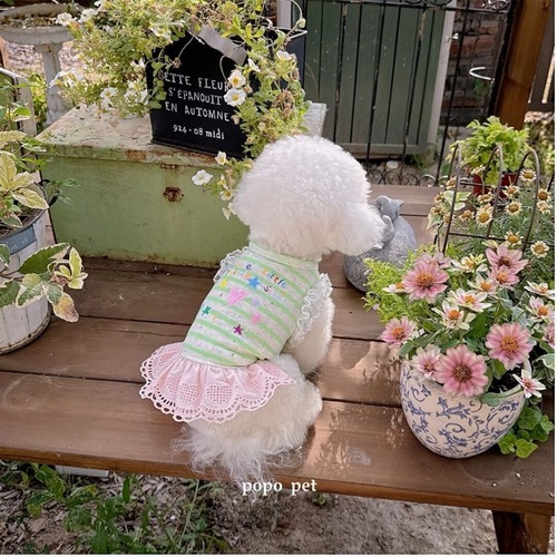 予約【№B05289-W】ストライプ柄 キラキラ星・ハート柄 レースフリル ワンピ(2カラー)