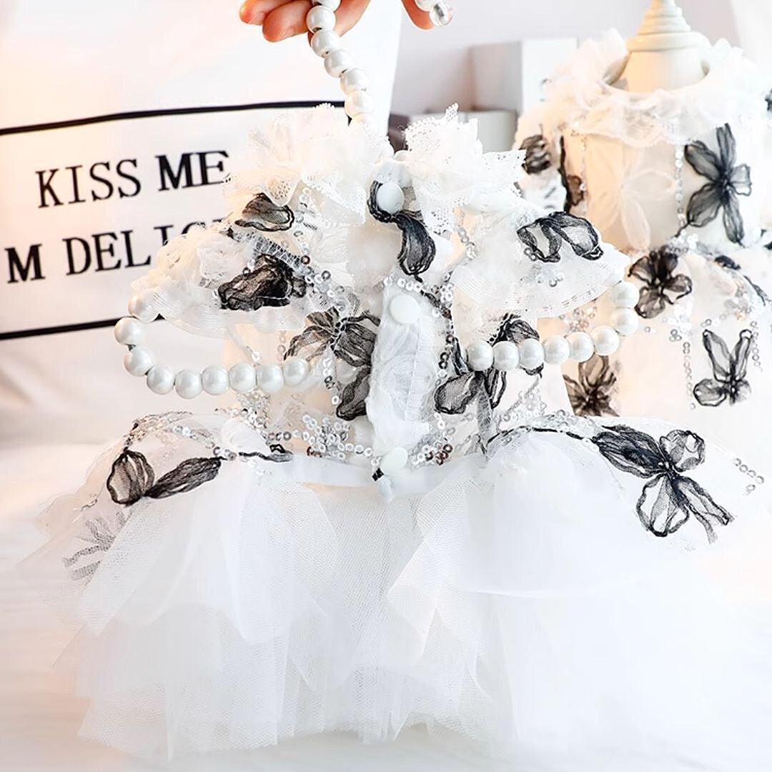 上品に仕上げ、チュールスカートには