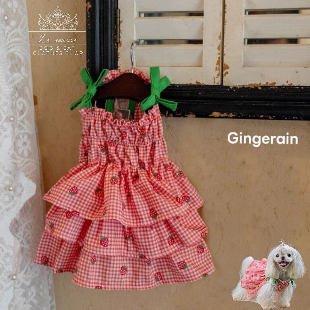予約【№B05666】ストロベリー ギンガムチェック シャーリング レイヤードワンピ