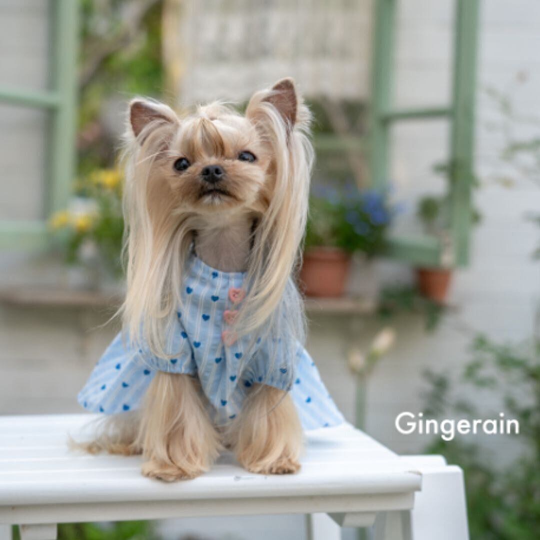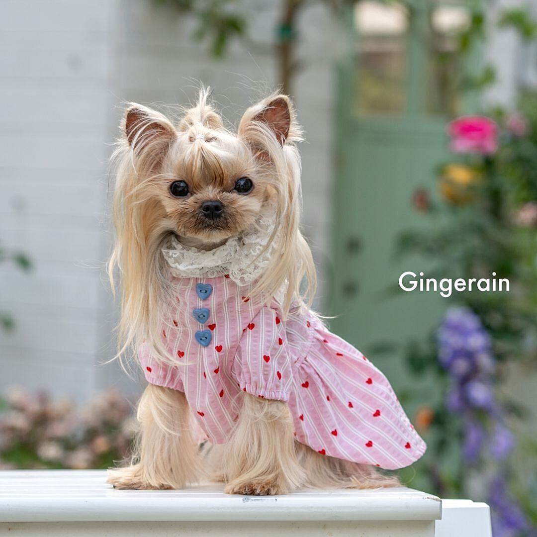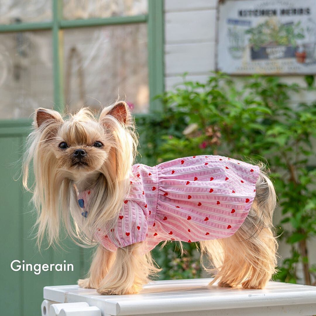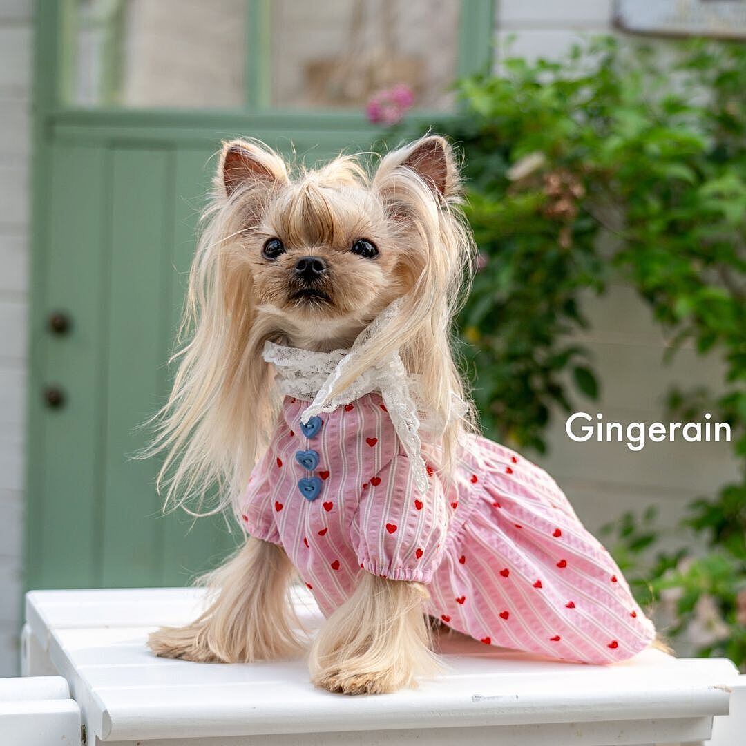 予約【№B05668】ストライプ&ハート パフスリーブ袖 フレアワンピ(2カラー)