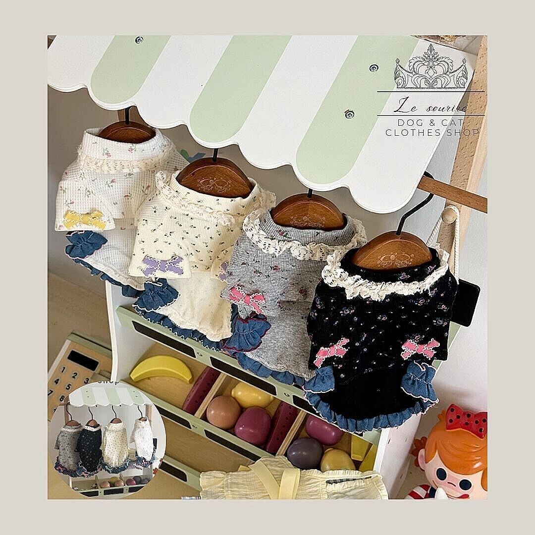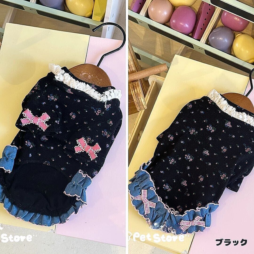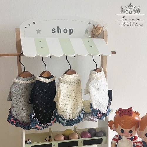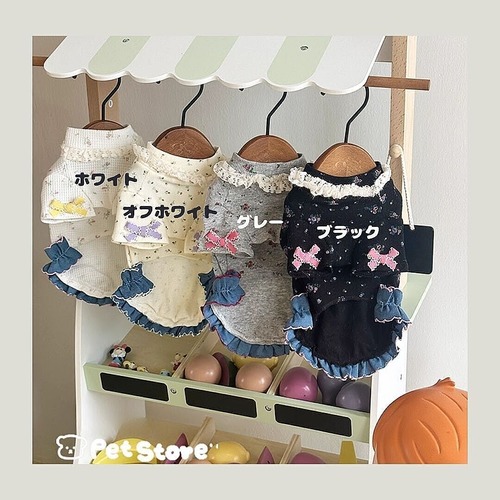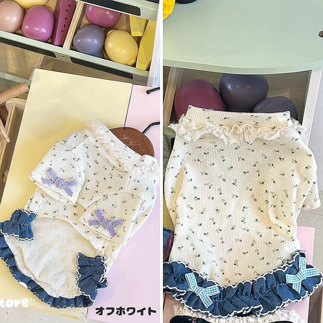予約【№B05880】ナチュラル 小花柄 デニムフリルワンピ(4カラー)