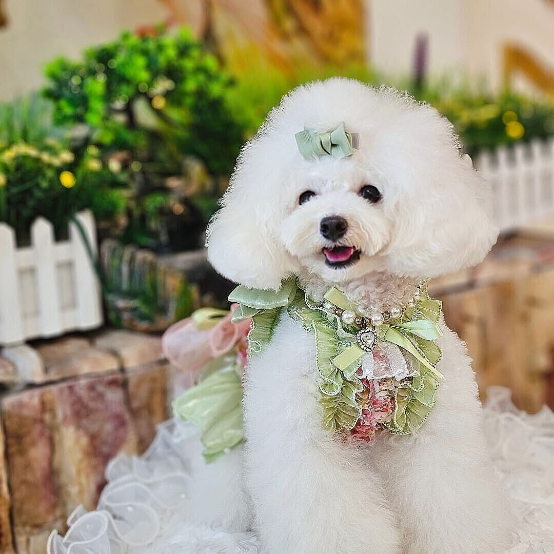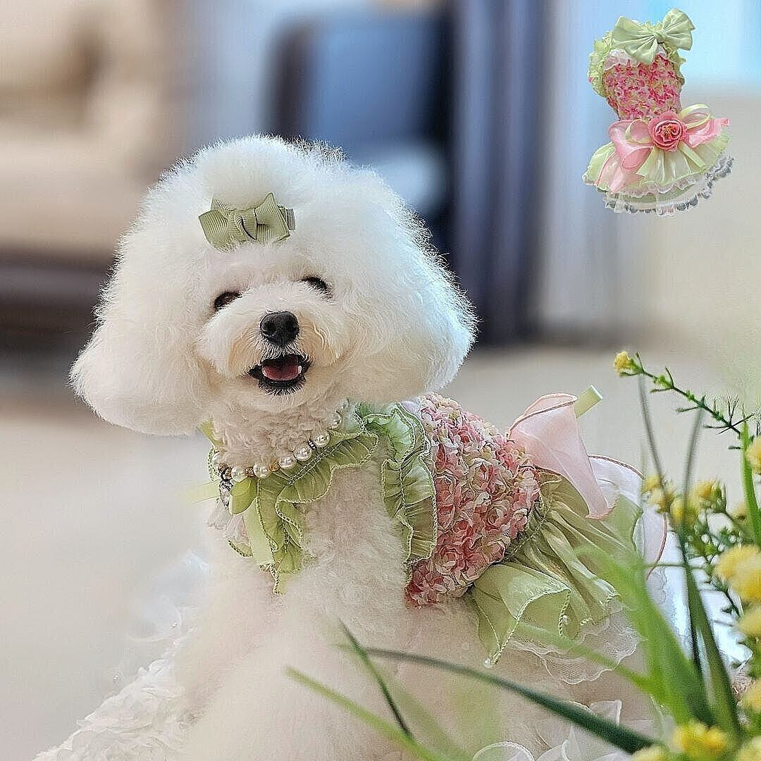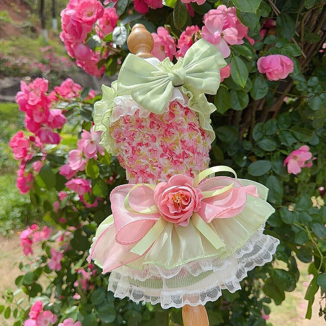 予約(海外ハンドメイド)【№B05976】ピンク&グリーン ローズ ドレスワンピ