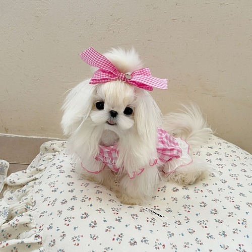 予約【№B06025】ギンガムチェック柄 フライングスリーブ フレアワンピ(バレッタ:オプション