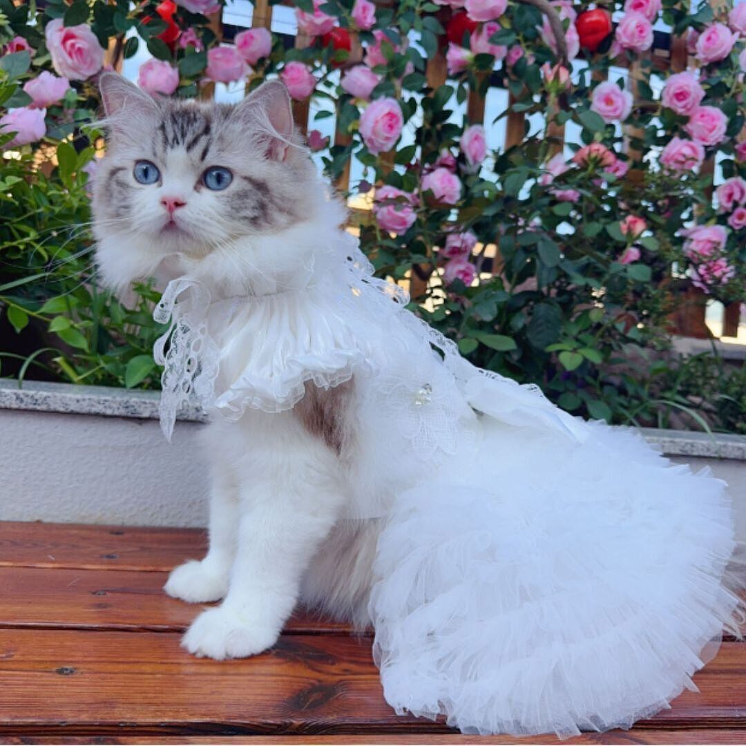 首元には小さなフリルとリボンをあしらい、