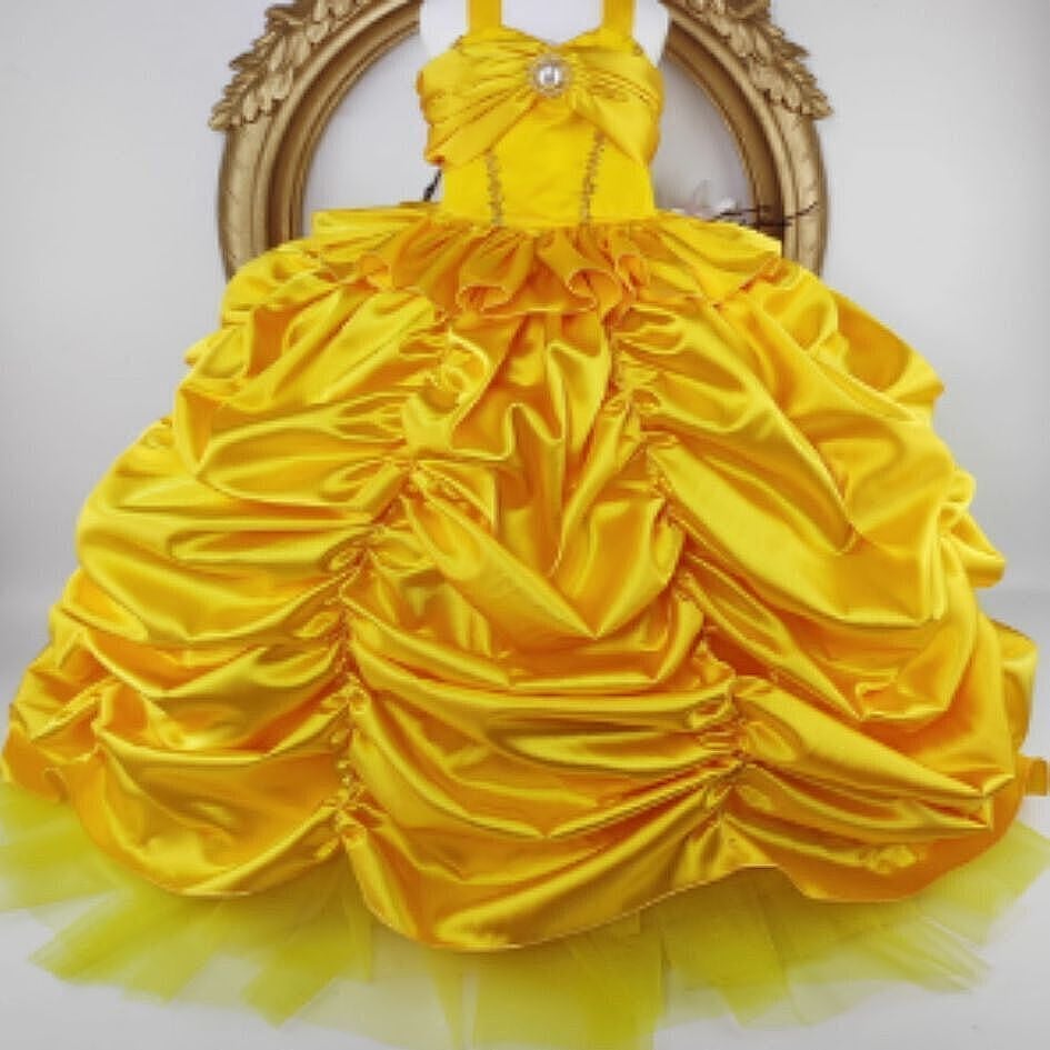 予約(海外ハンドメイド)【№B06090】ゴールドイエロー サテン ギャザー&ドレープ ロングドレス(2way)