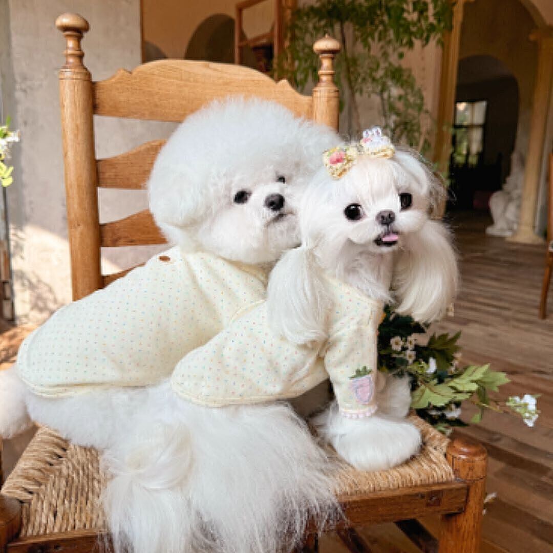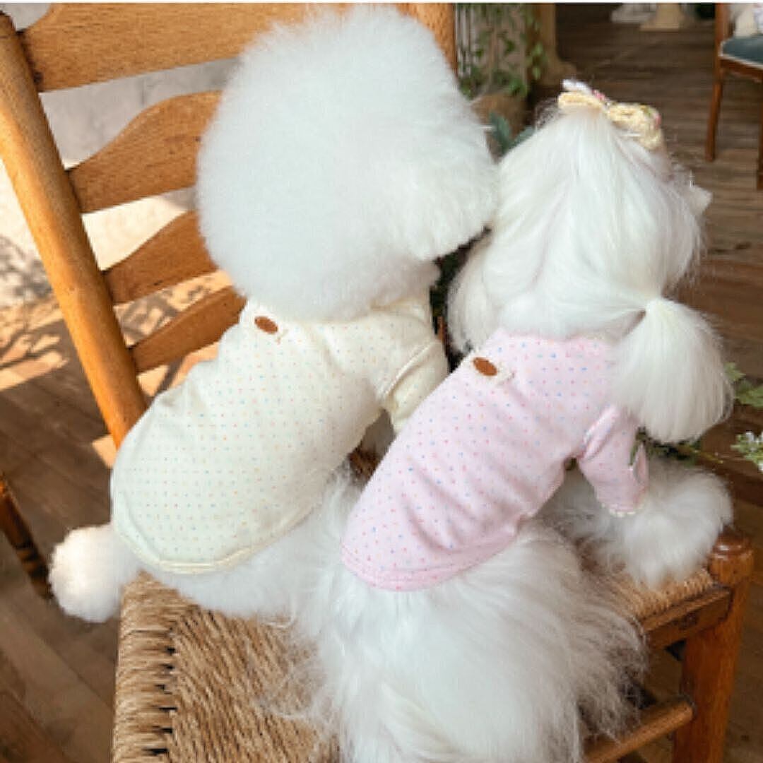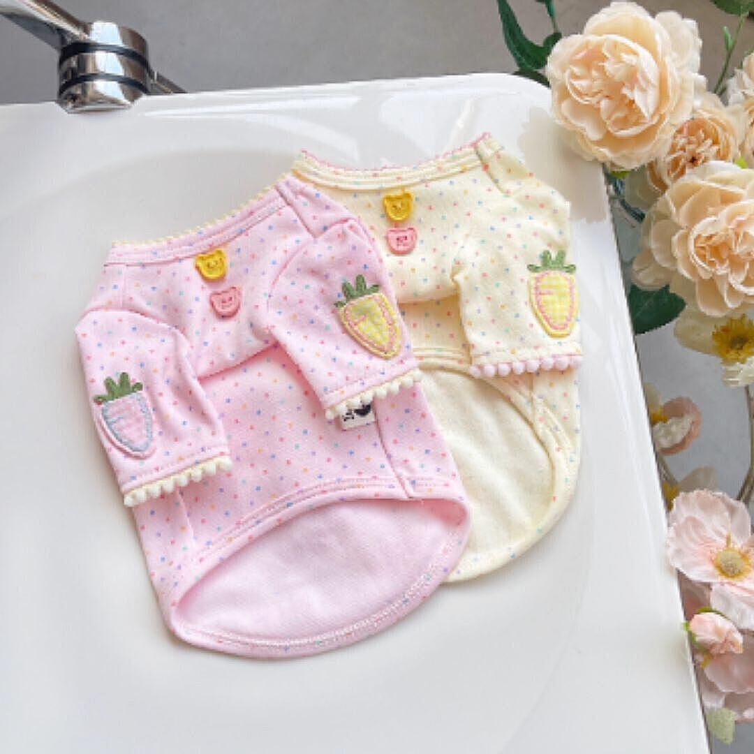 予約【№B06114】K&Z カラフルドット 苺刺繍 クマボタン 長袖シャツ(2カラー)