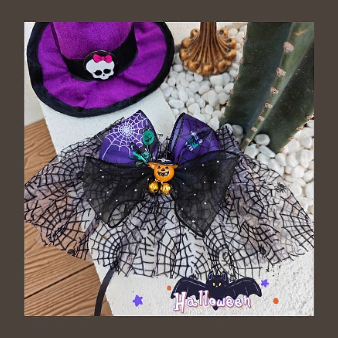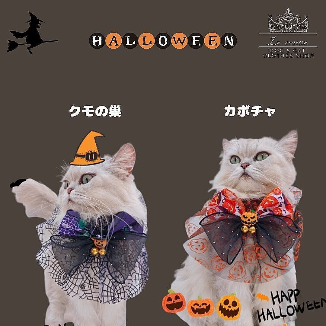 予約【№B06171】犬猫 ハロウィン チョーカー カボチャ クモの巣 2種類