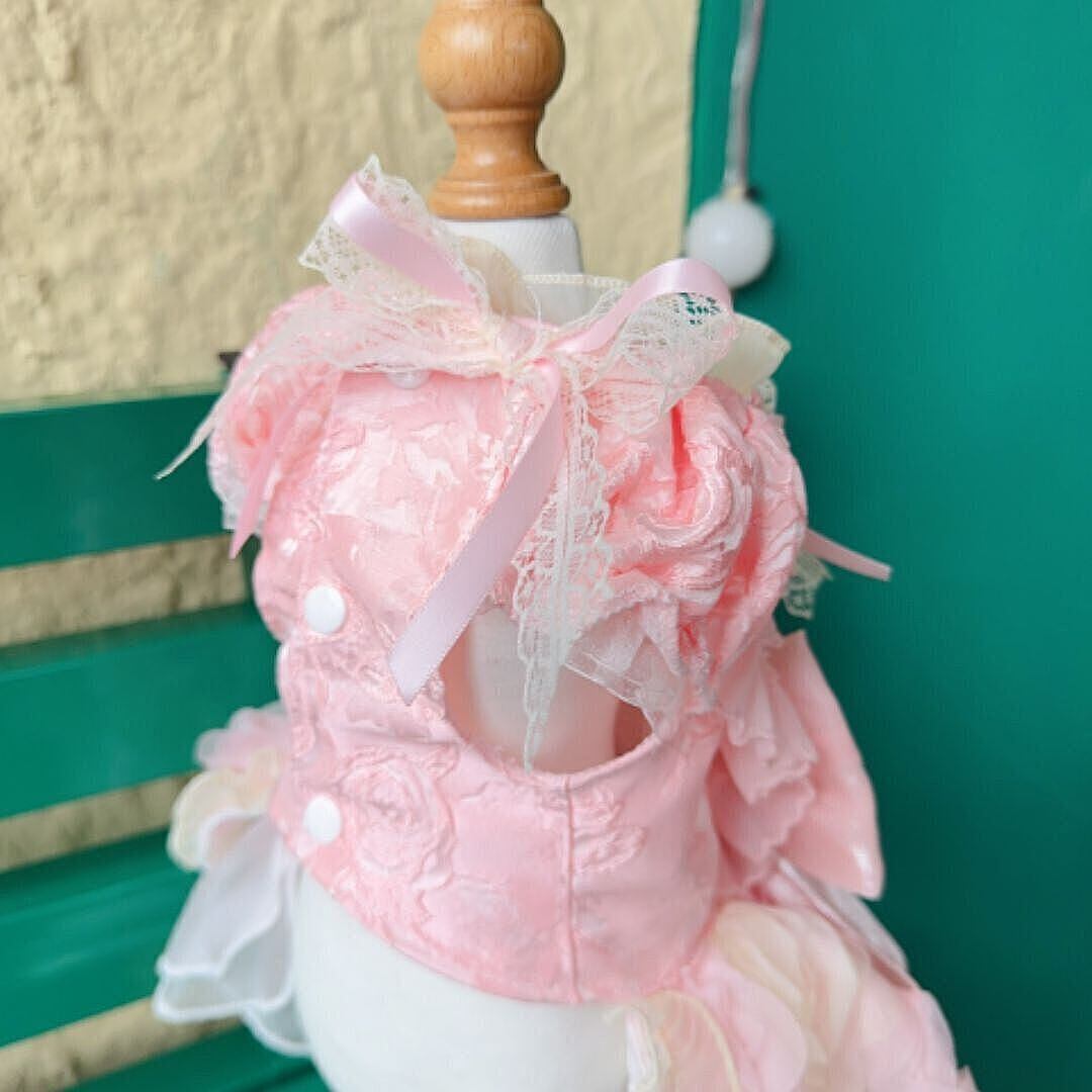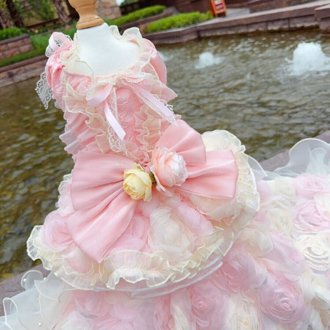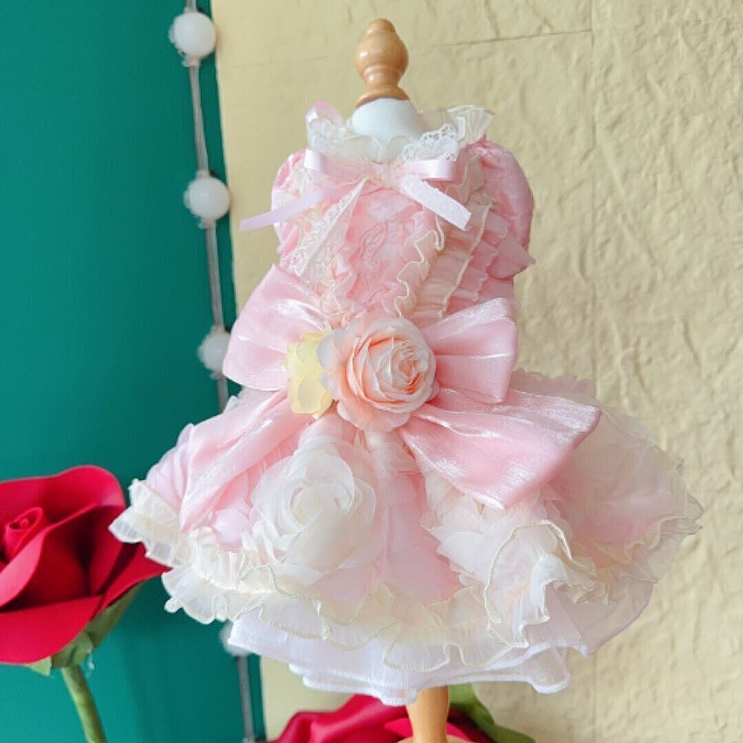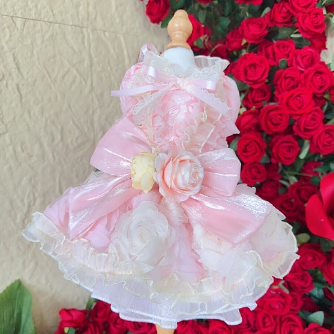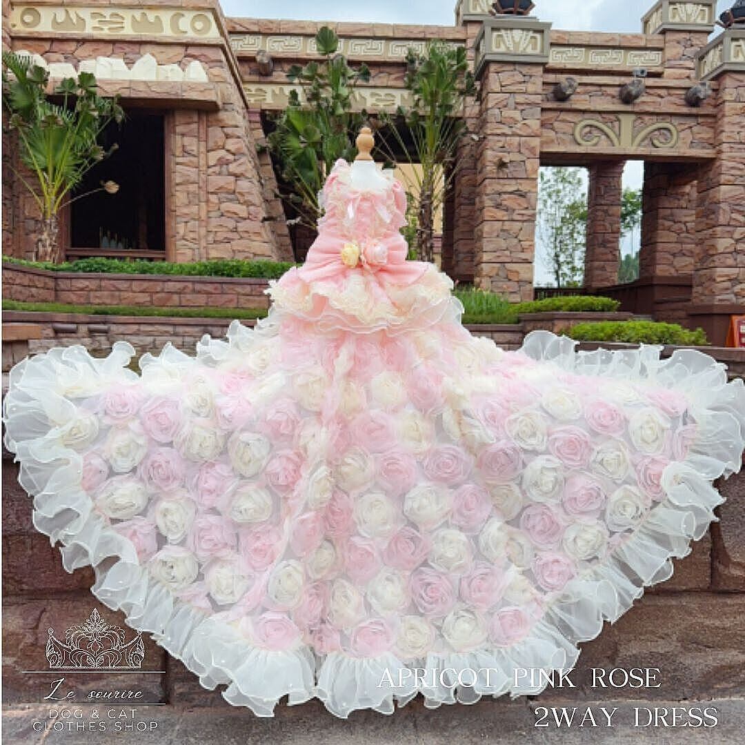 予約(海外ハンドメイド)【№B06301-L】アプリコット・ピンク ローズ プリンセスドレス(2way)