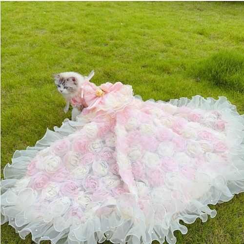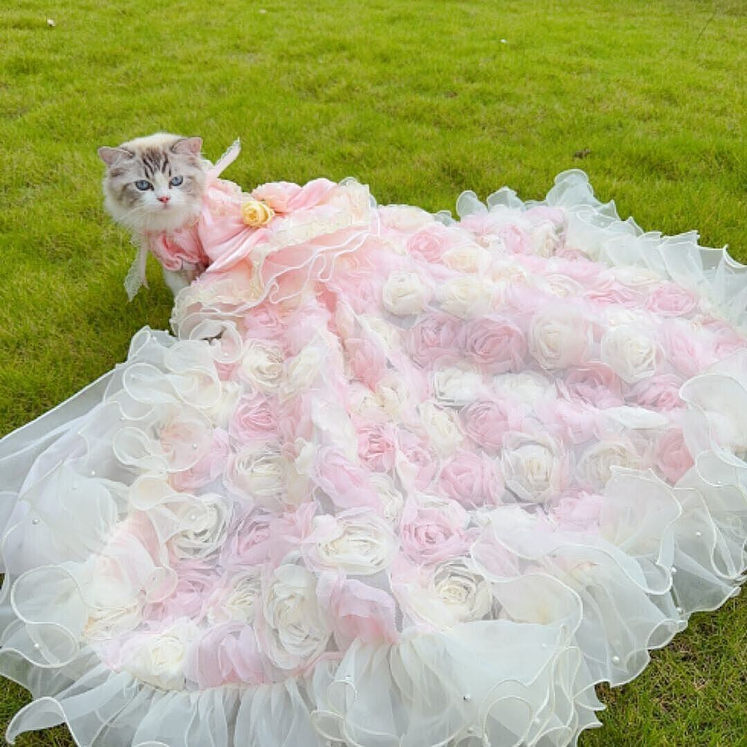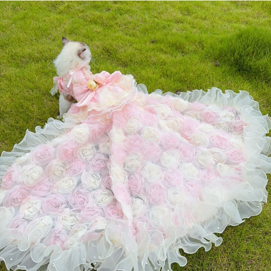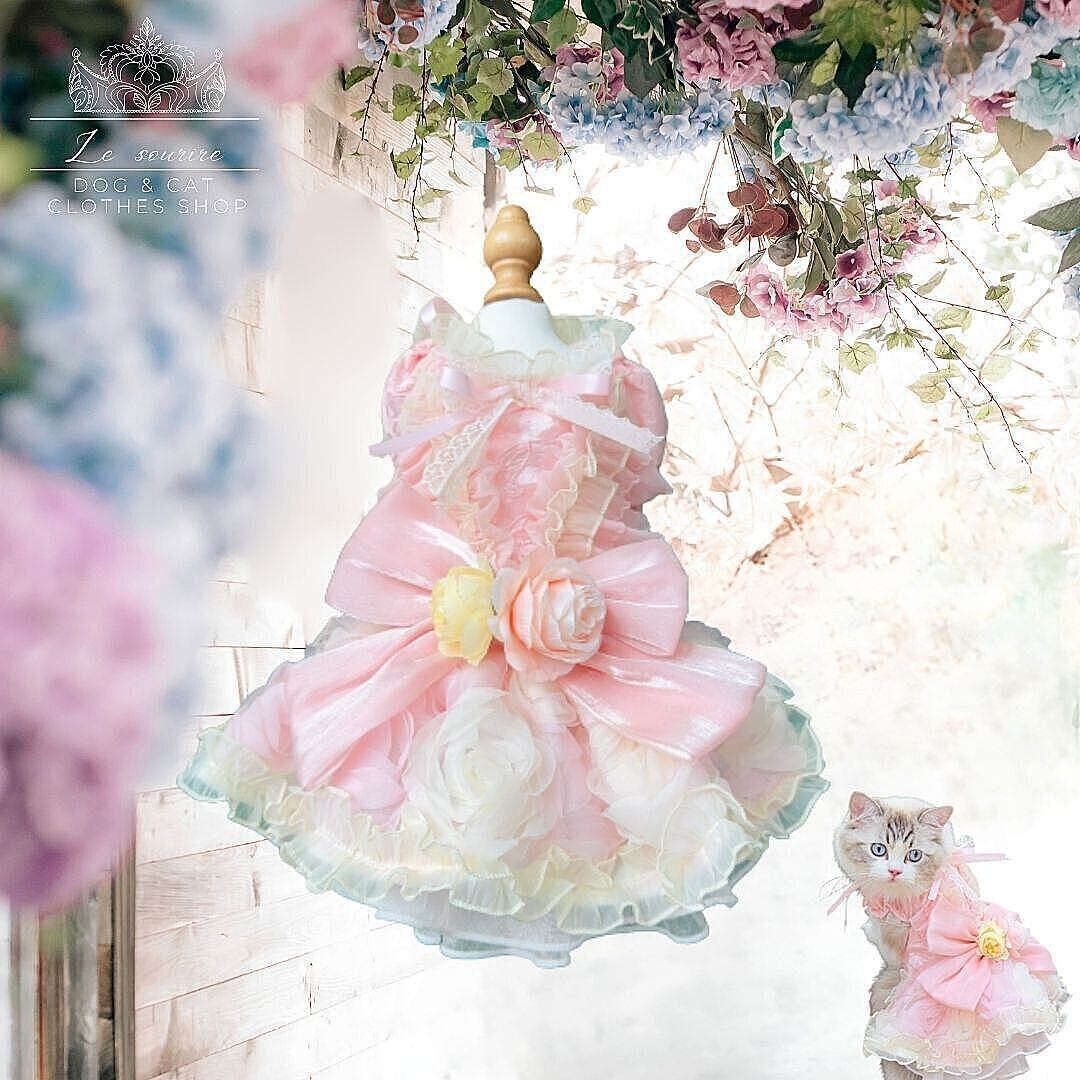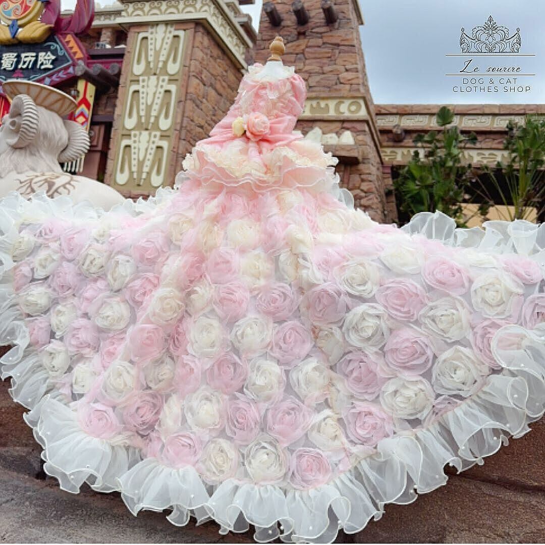 予約(海外ハンドメイド)【№B06301-L】アプリコット・ピンク ローズ プリンセスドレス(2way)