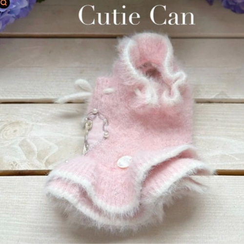 予約【№B06342】くまモチーフ ピンク バレエスタイル ニットワンピ