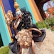 予約(海外ハンドメイド)【№B06264-S】ブラック&ゴールド フラワー ドレスワンピ