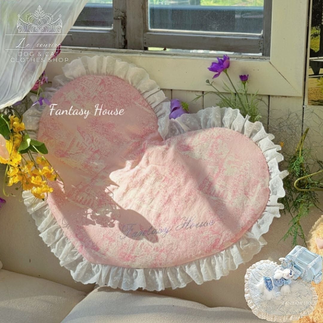 予約【№B06384】お城柄or無地 レースフリル ハート形 カフェマット(4カラー)