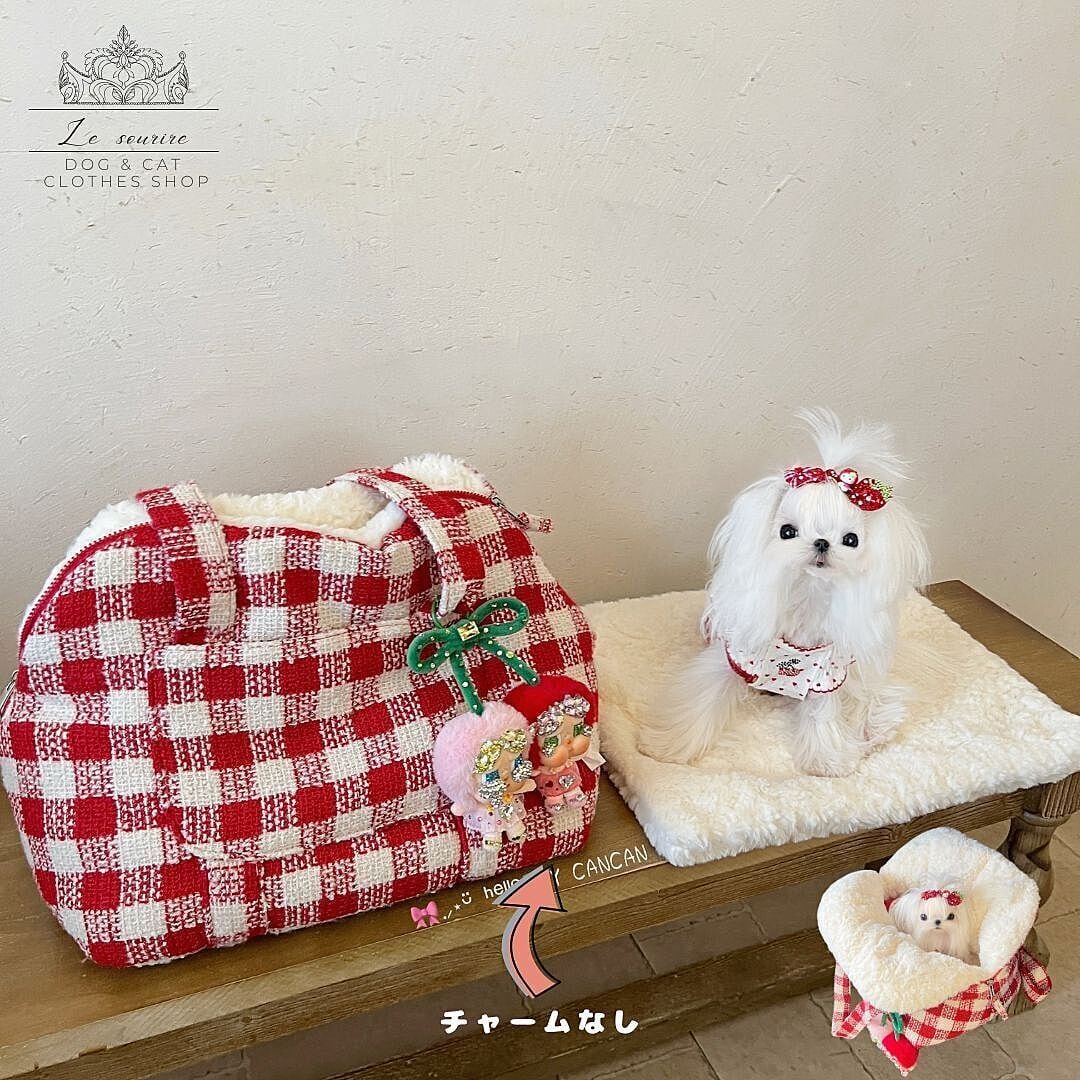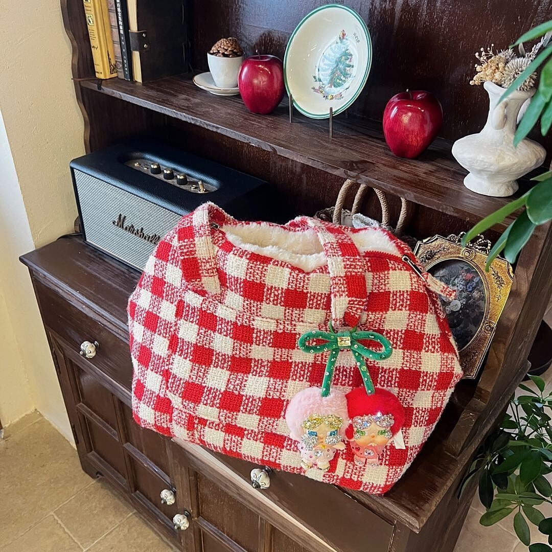 予約【№B06442】ギンガムチェック 起毛 肩掛け キャリーバッグ(チャームなし)