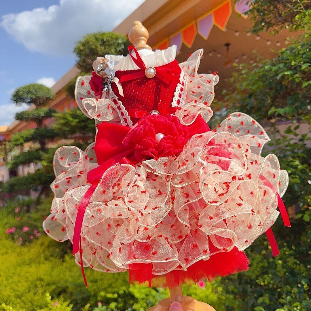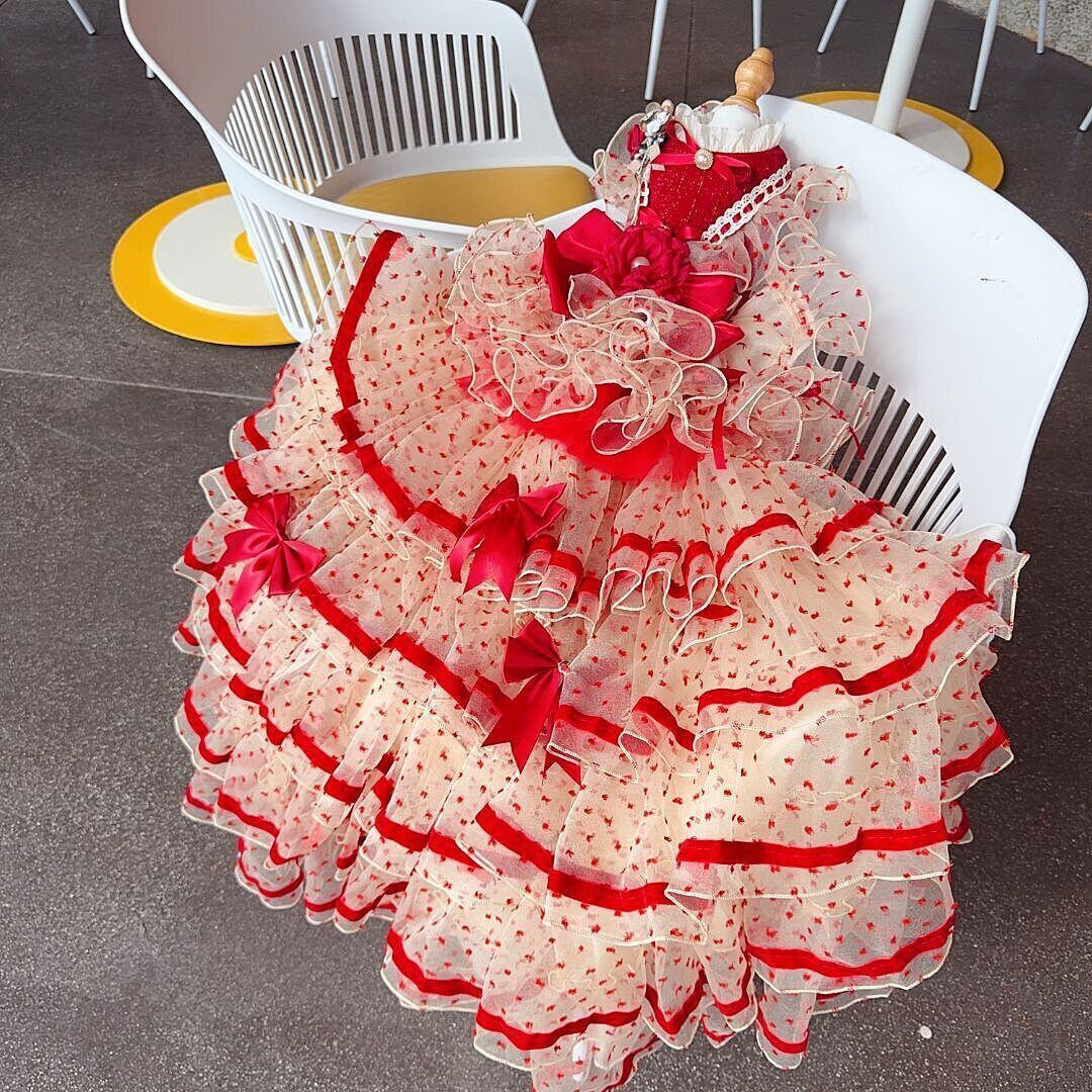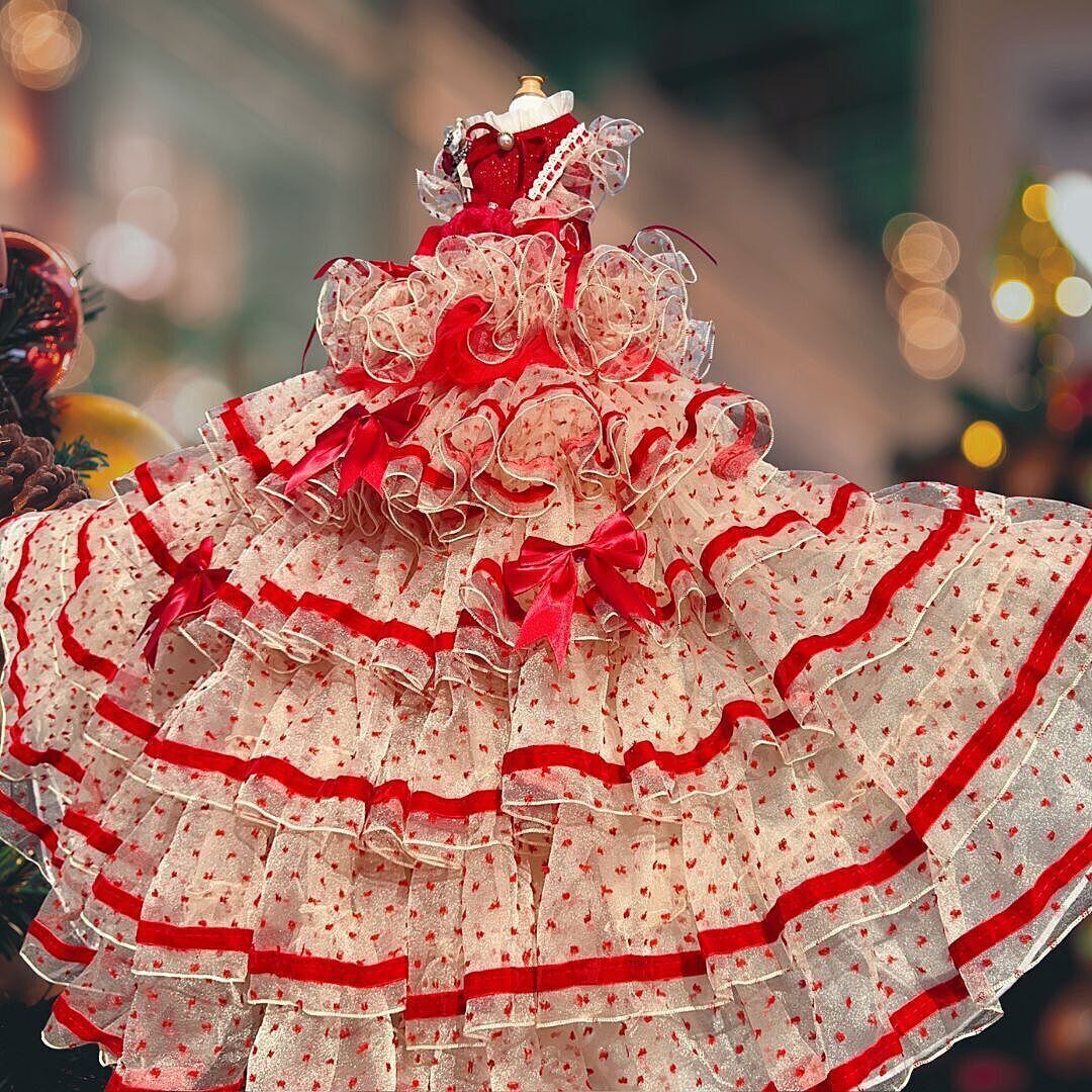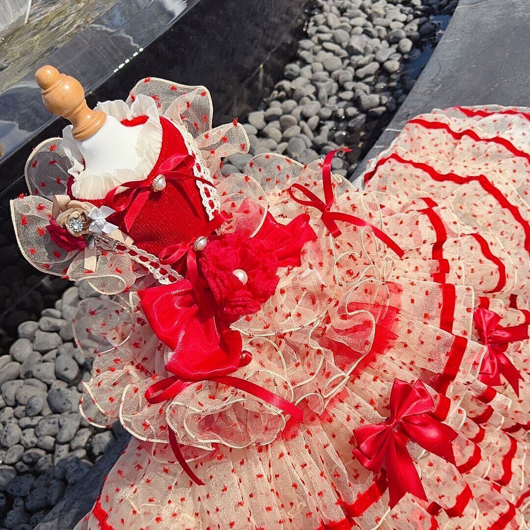 予約(海外ハンドメイド)【№B06457-S】ドット柄 フラメンコ ドレスワンピ