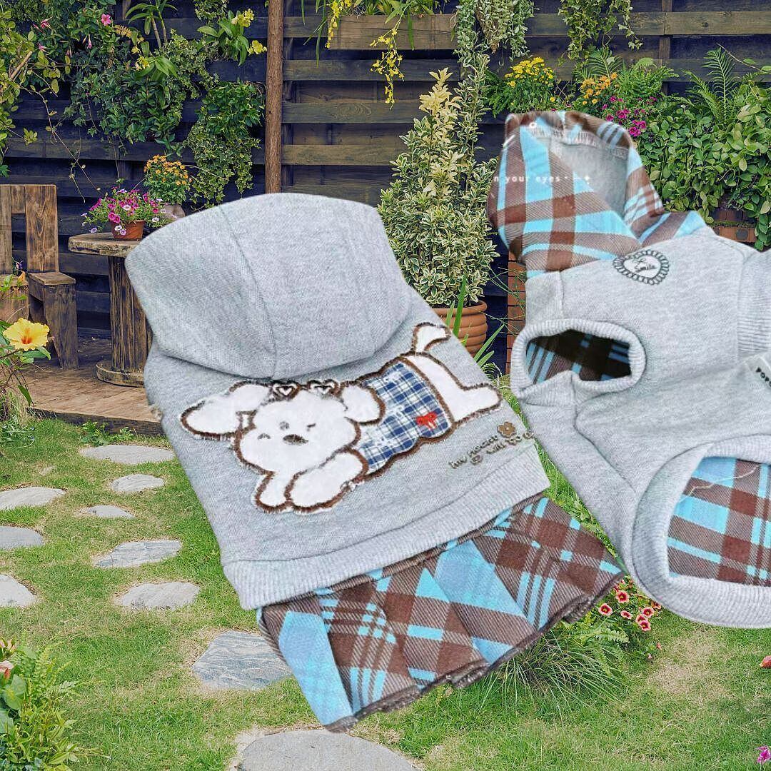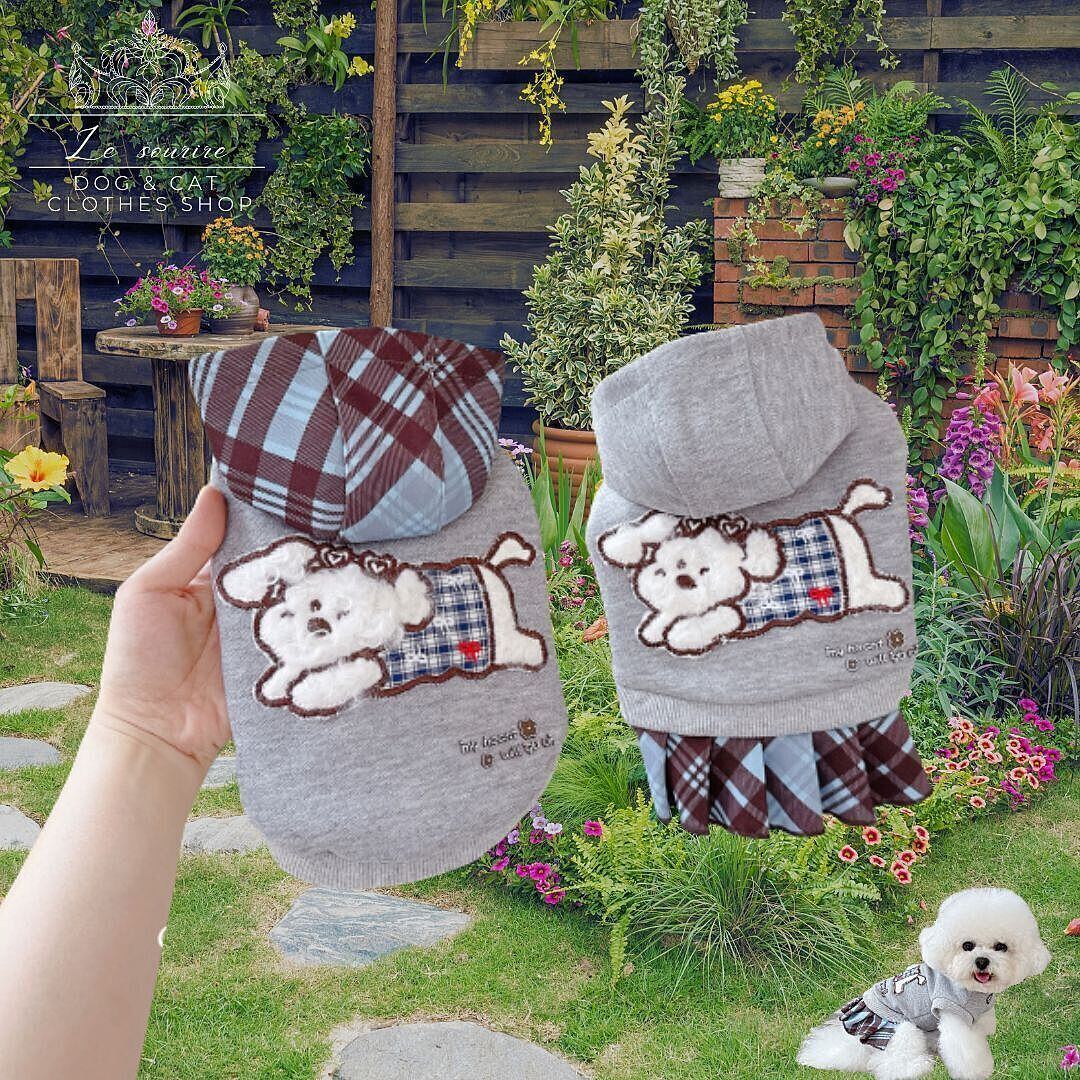 予約【№B06524】白犬 グレー パーカー・ワンピ ペアルック