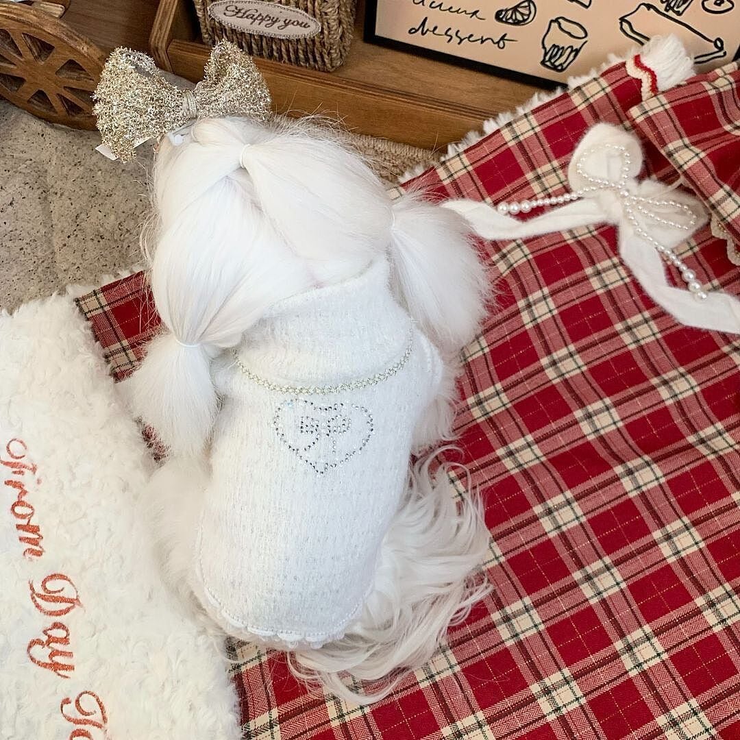 予約【№B06538】パールホワイト ハイネック ニットセーター