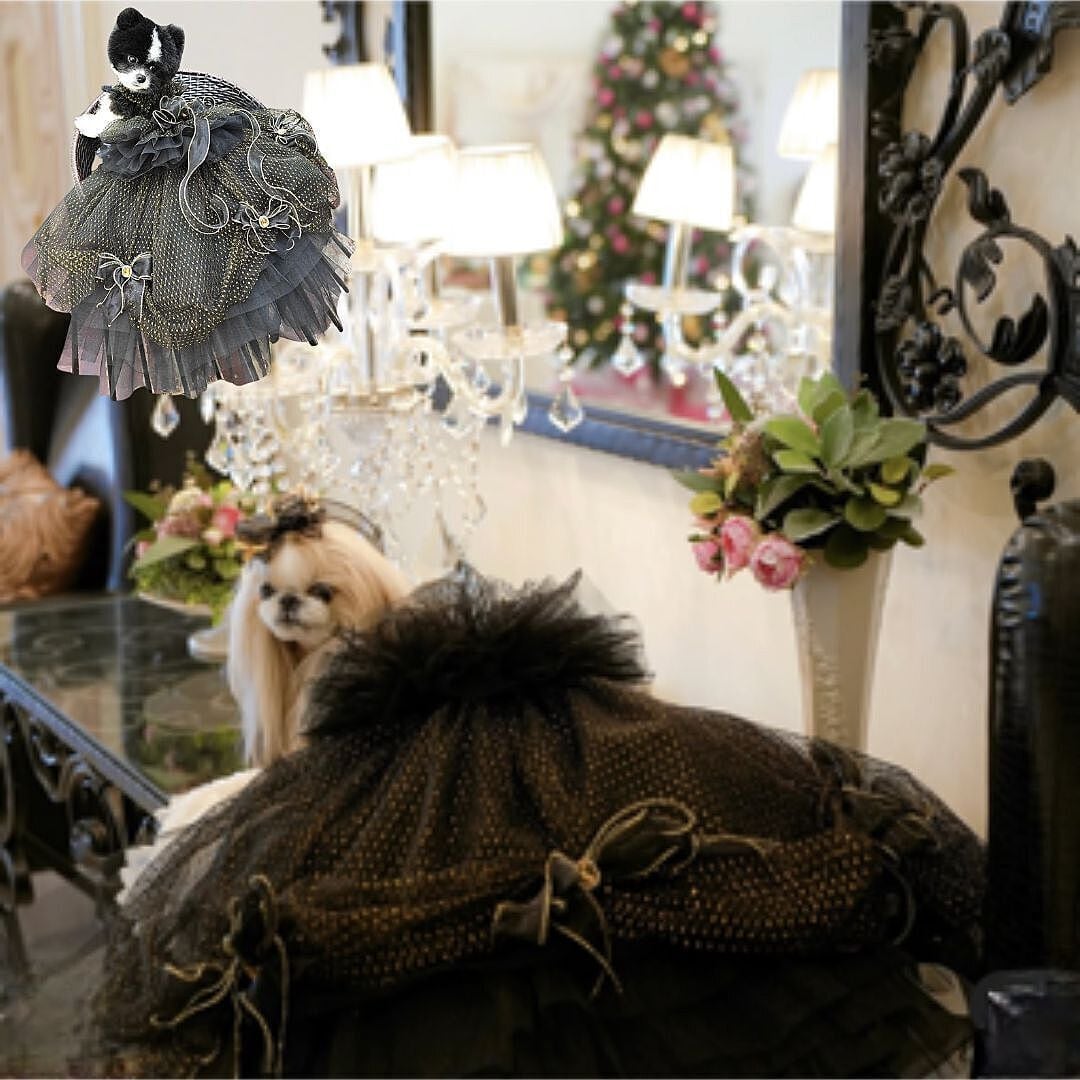 予約(海外ハンドメイド)【№B06536₋Ⅼ】ブラックゴールド キラキラドット チュール 2WAY ロングドレス)
