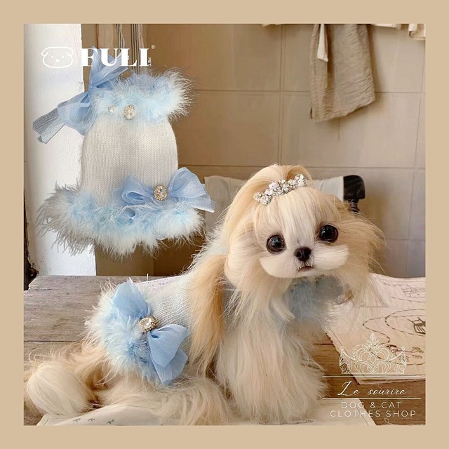 予約【№B06548】ふわふわフェイクファー ビジューリボン プリンセス ニットワンピ(2カラー)