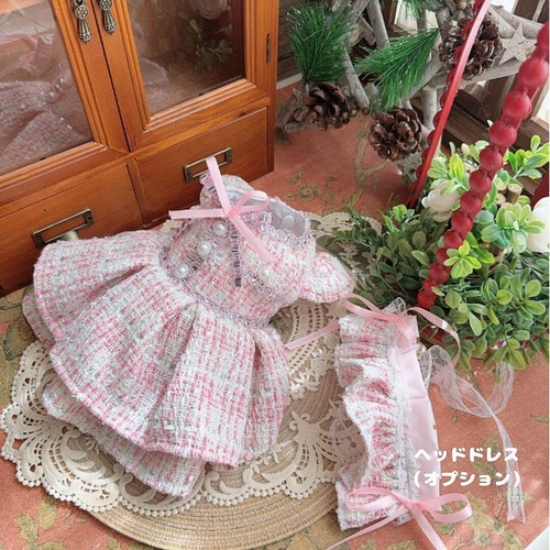 予約【№B06621】ハイウエスト ツイード プリーツワンピ(ヘッドドレス:オプション)
