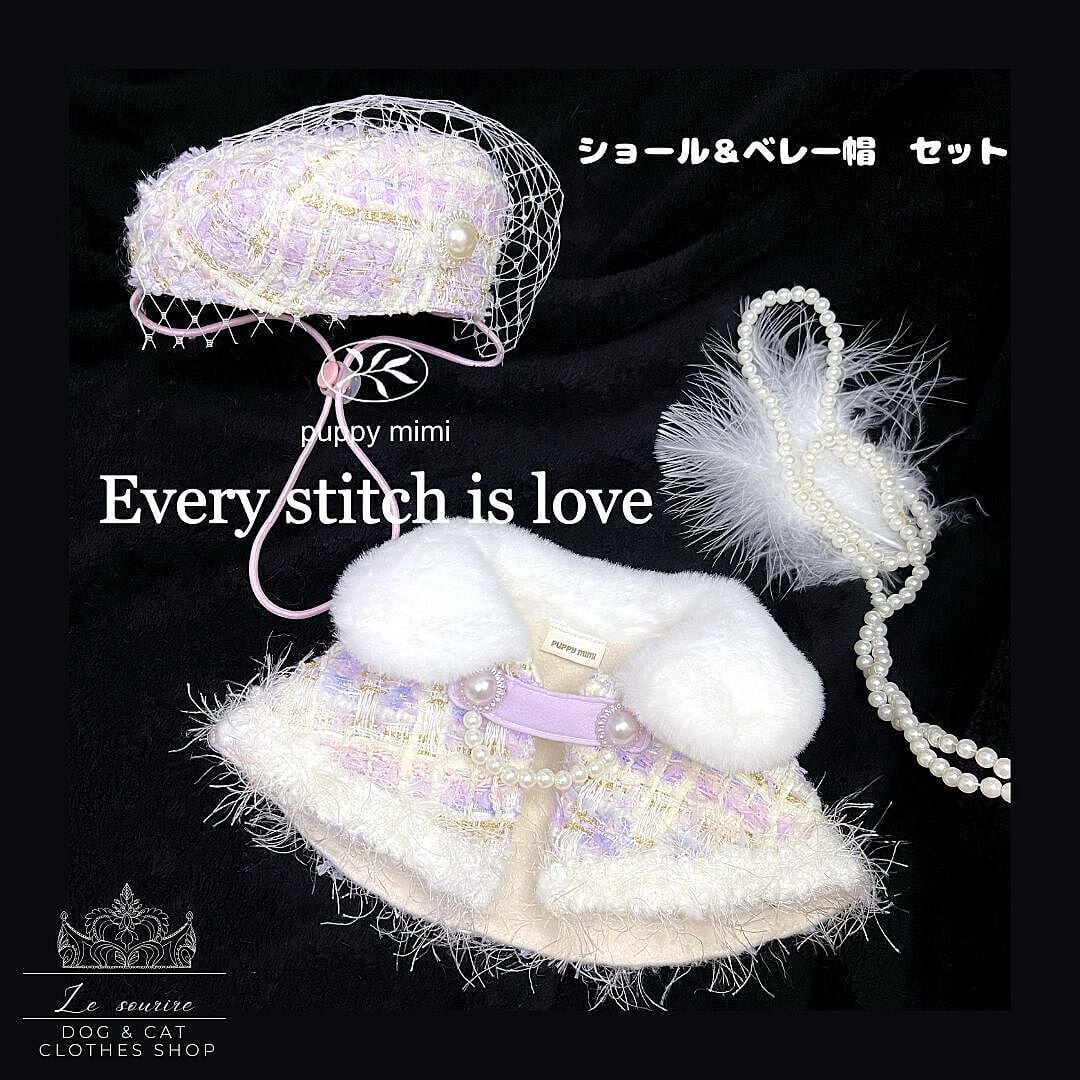予約【№B06701】フェイクファー ツイード ショール&帽子セット
