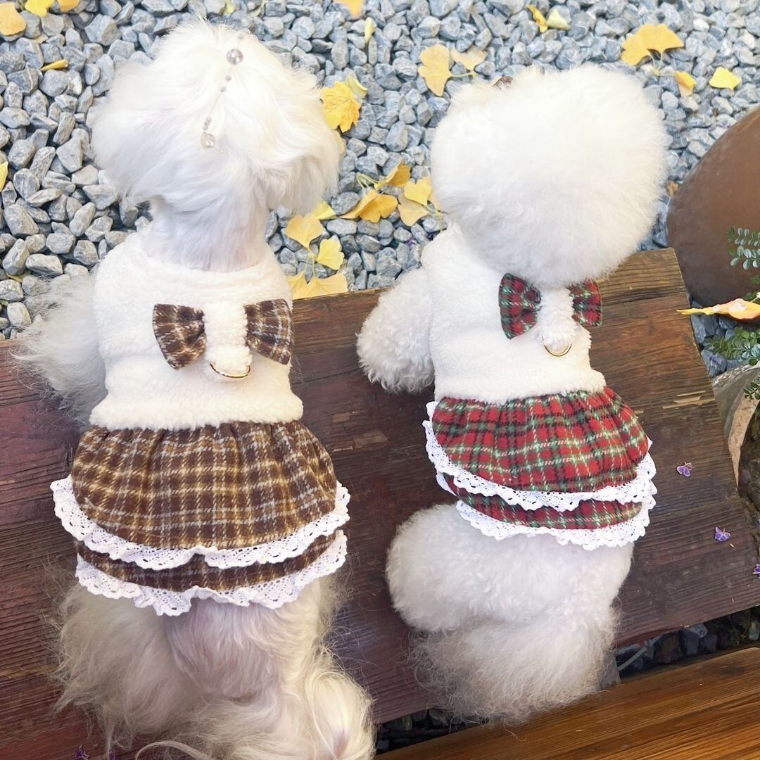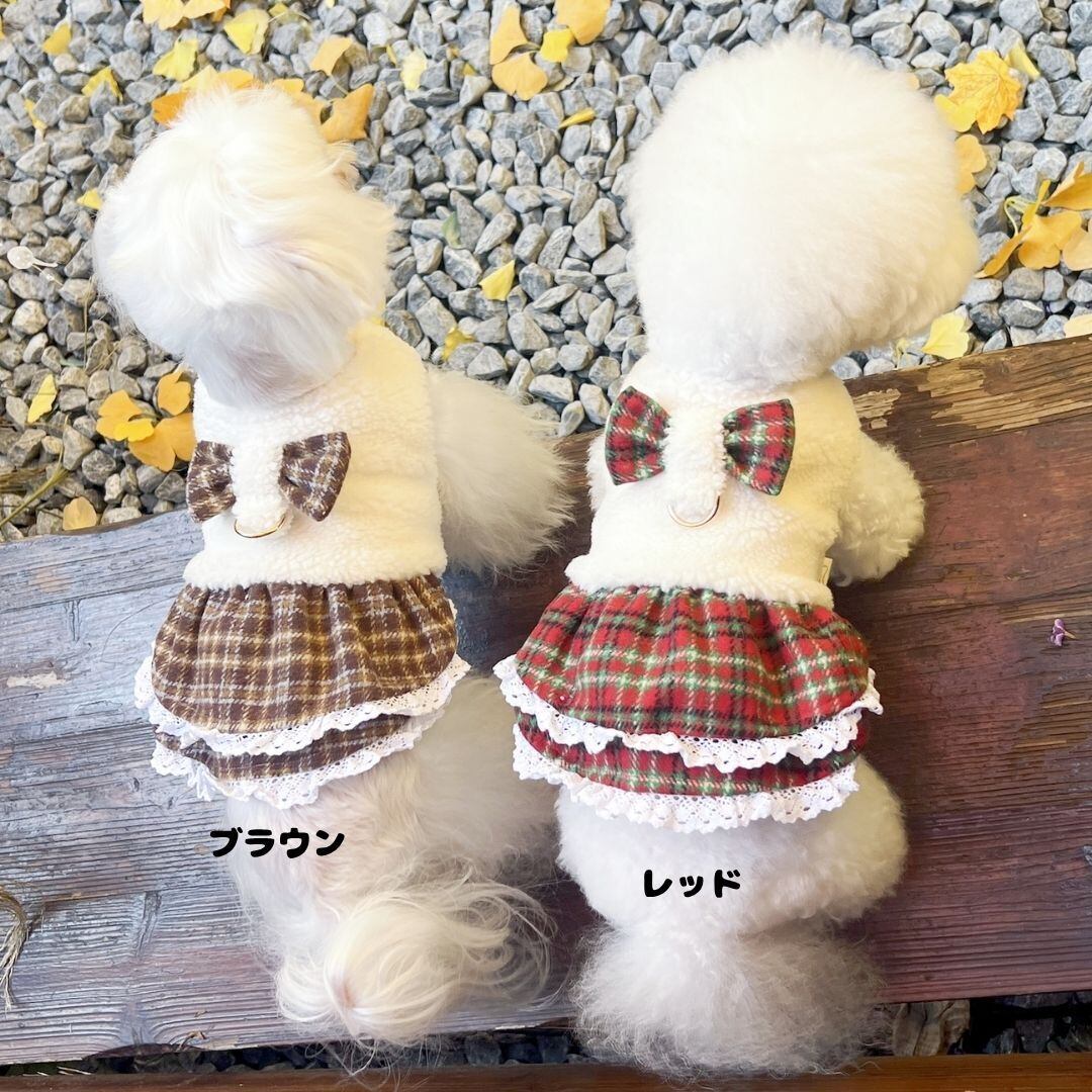 予約【№B06852】ギンガムチェック×ボア フレアワンピ (2カラー)Dカン付き
