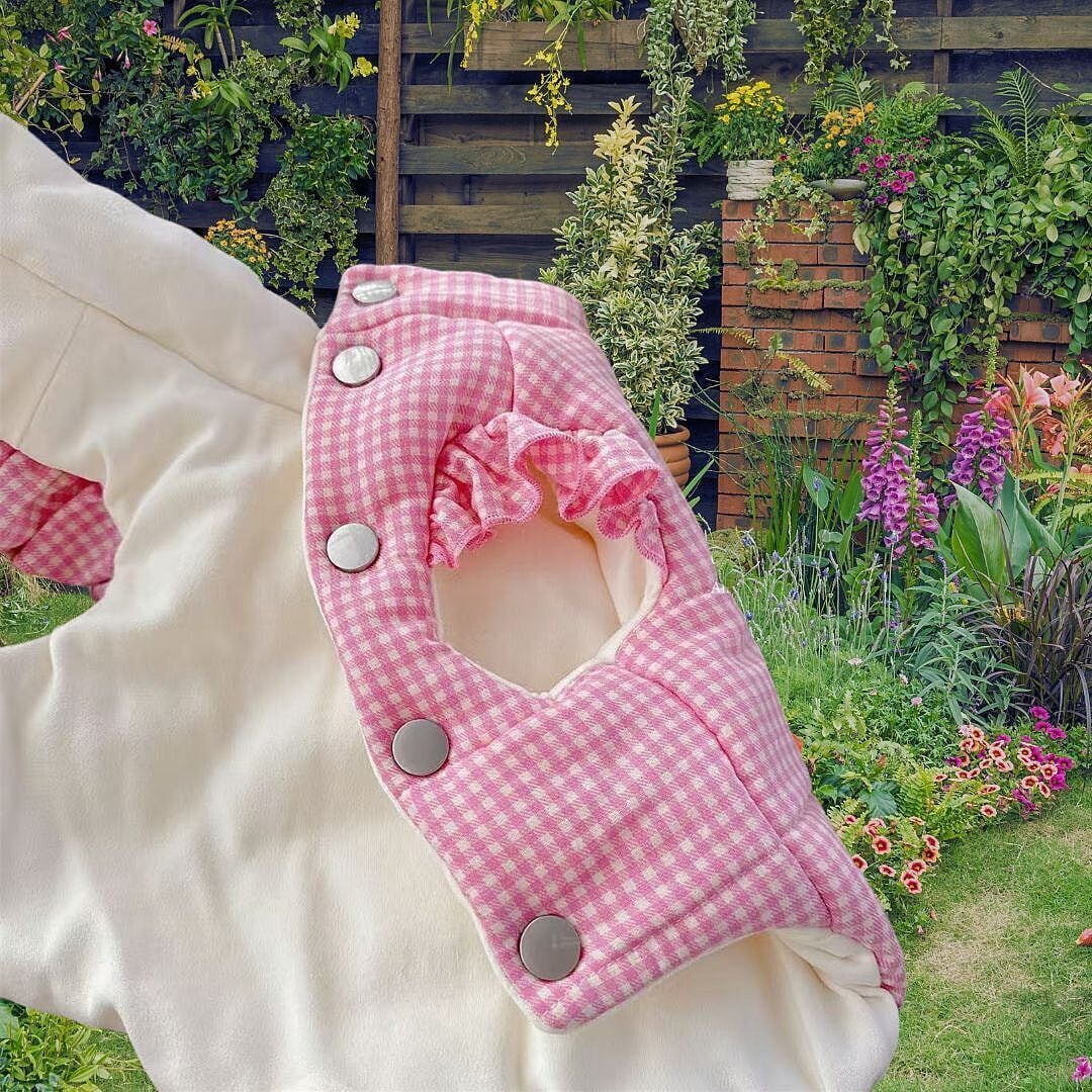 予約【№B06864】ギンガムチェック スタンドカラー ベストアウター Dカン付き