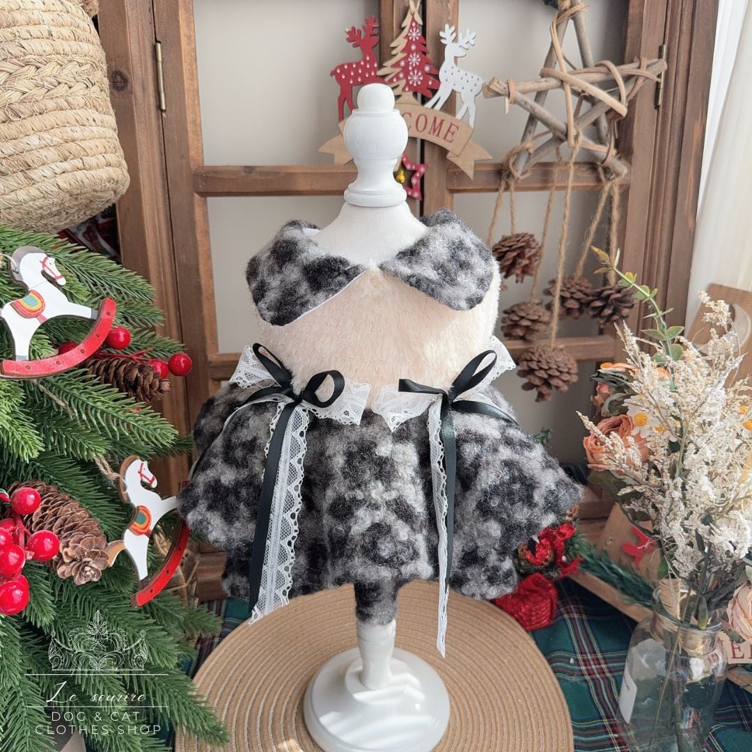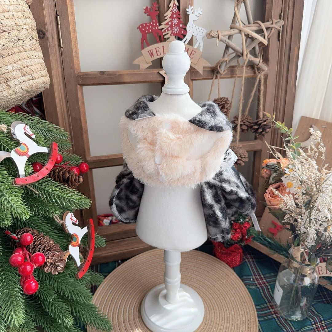 予約【№B07001】フェイクファー スパンコールリボン ライトベージュ ジャカード ドレスワンピ