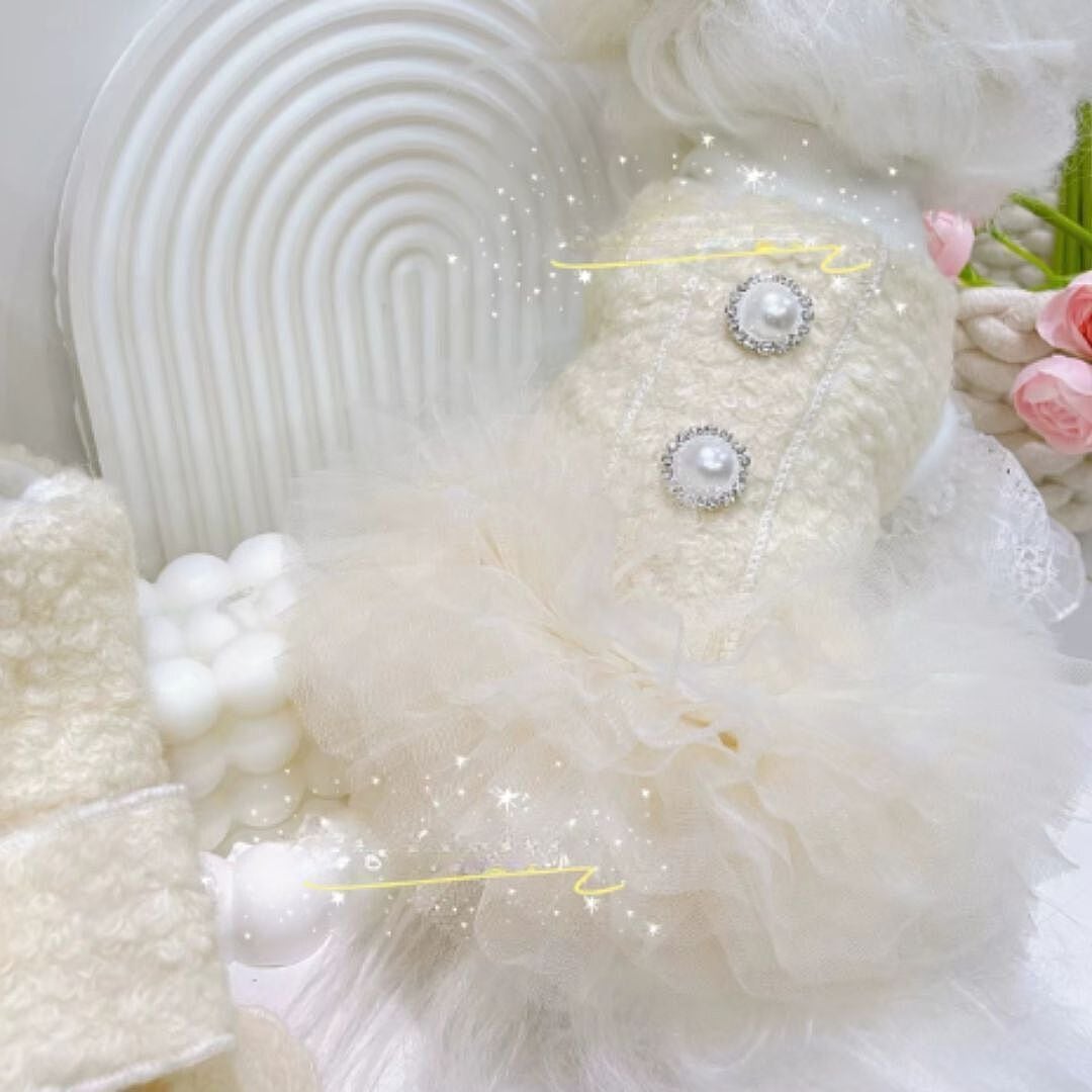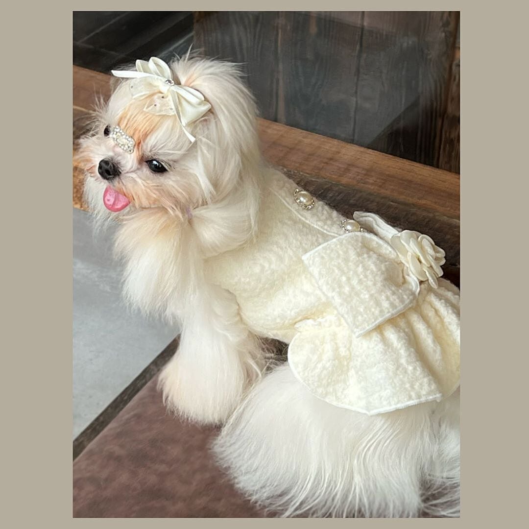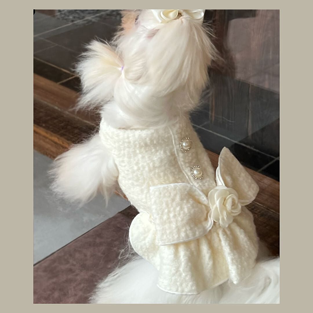予約【№B07010】オフホワイト カメリアorチュチュ ツイードワンピ