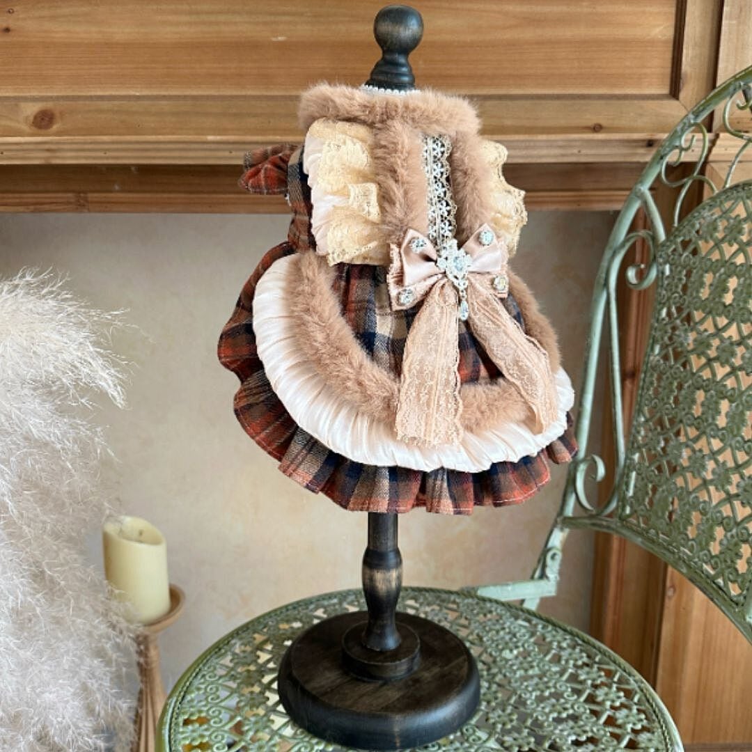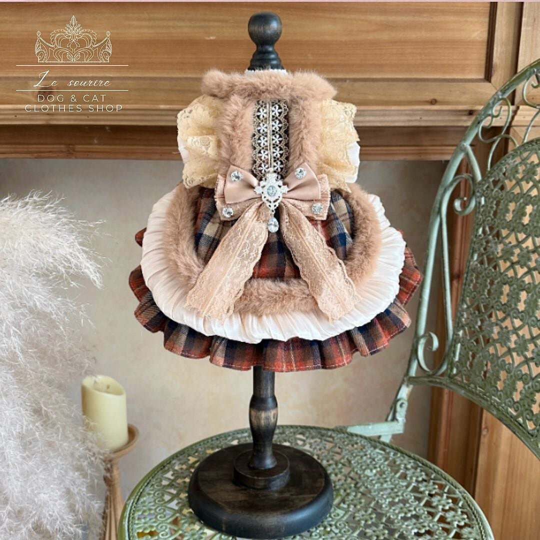 予約【№B07075】ブラッシュドチェック フェイクファー フレアワンピ