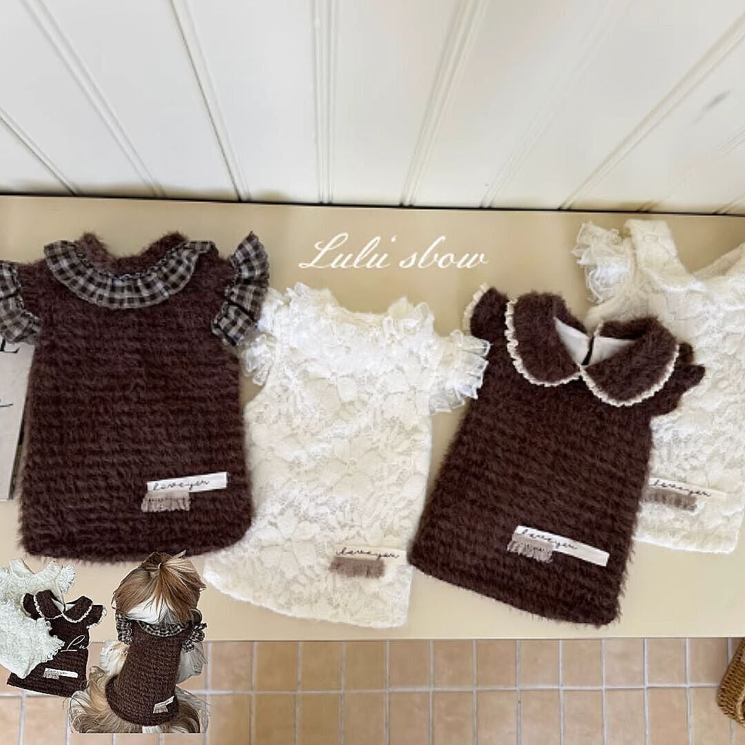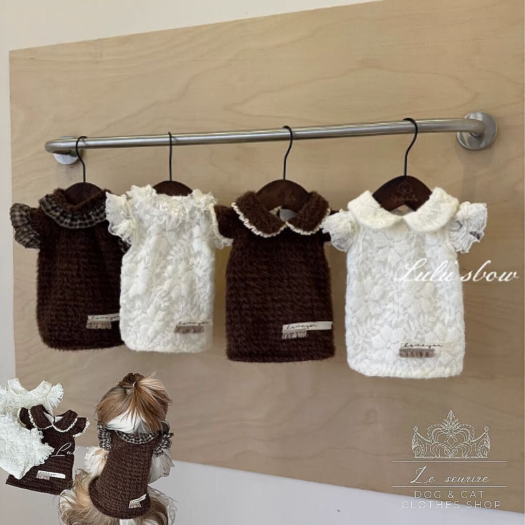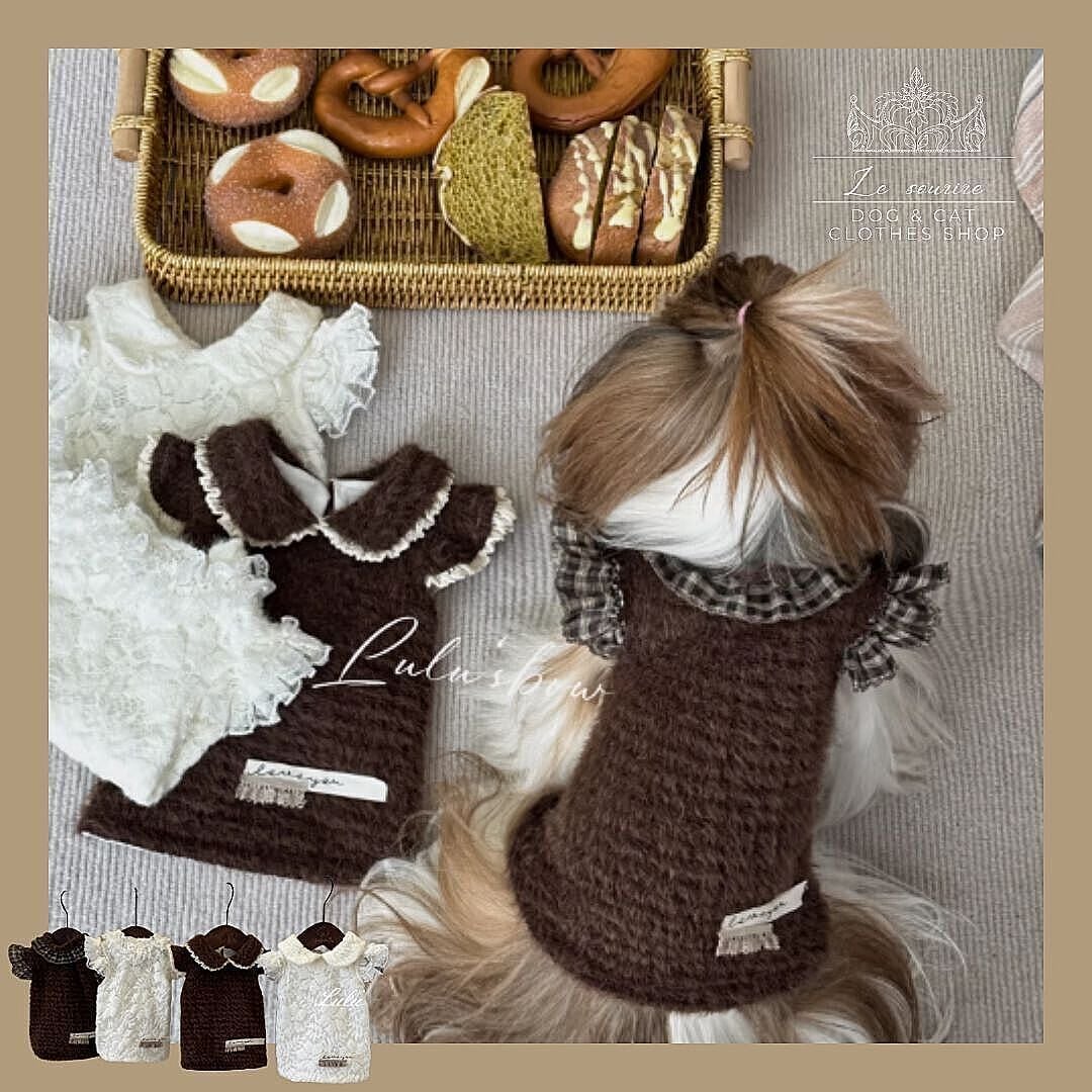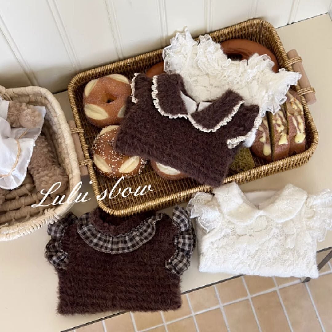予約(海外ハンドメイド 受注製作品)【№B07092】Lulu’sBow ドールカラー ストレッチレース ウォームフリースベース トップス
