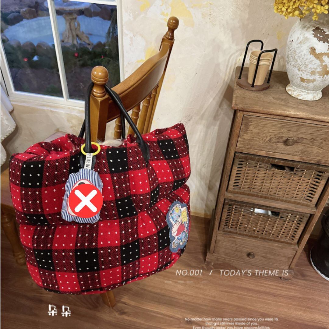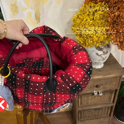予約【№B07146】ポルカドットチェック柄 ハンドヘルド キャリーバッグ