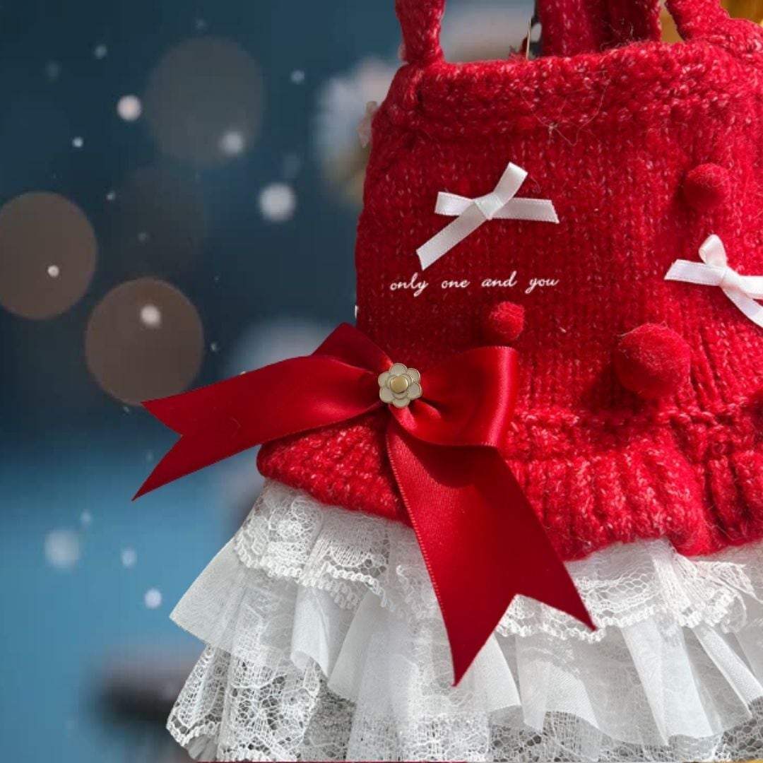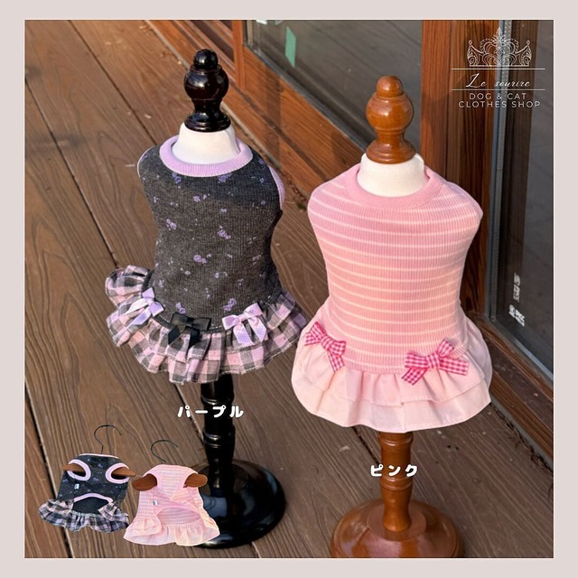 予約【№B07133】ニット×レースフリル リボン プリンセスワンピ