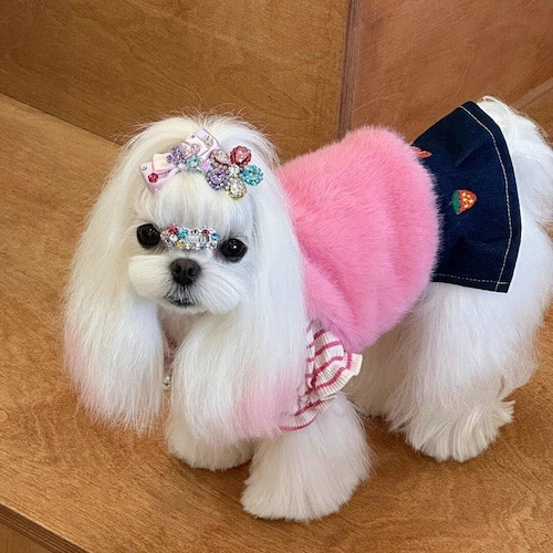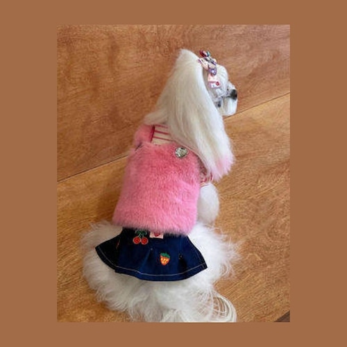 予約【№7153】ローズレッド フェイクファー クロップド丈 ベスト