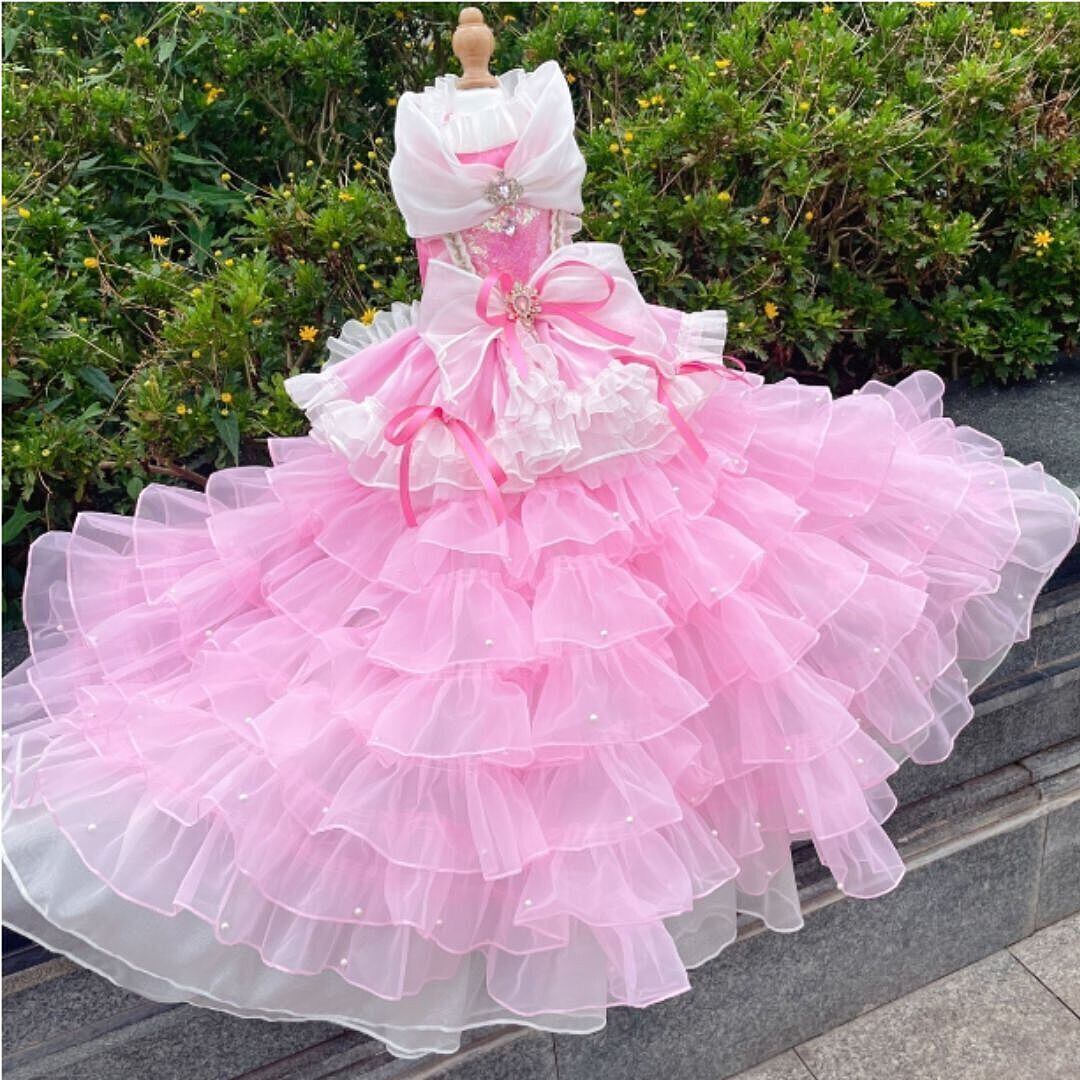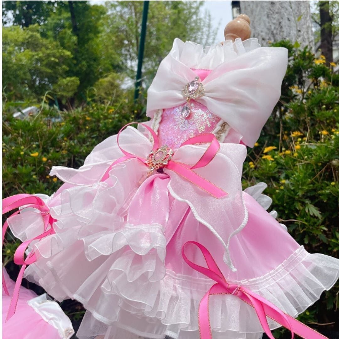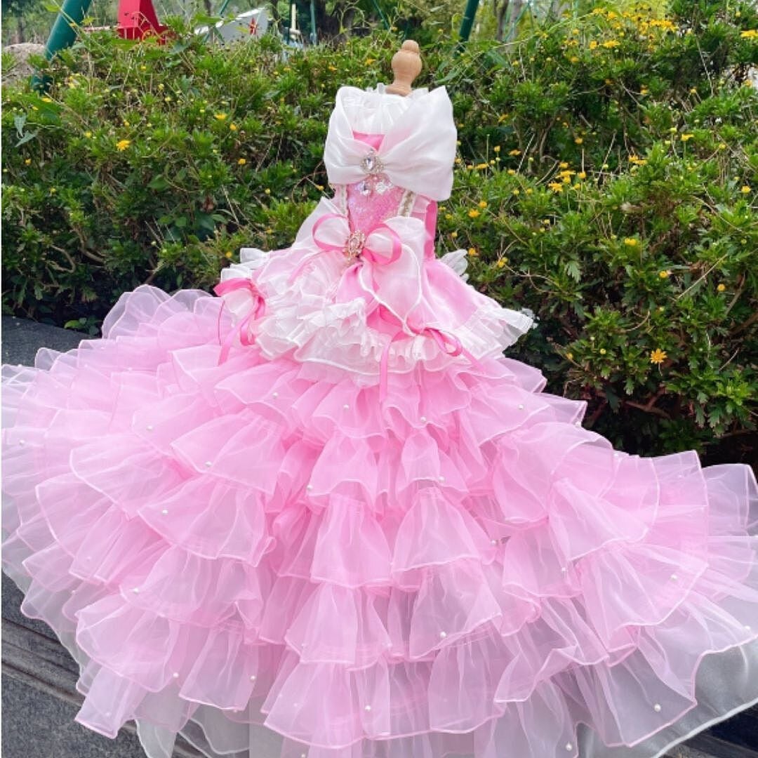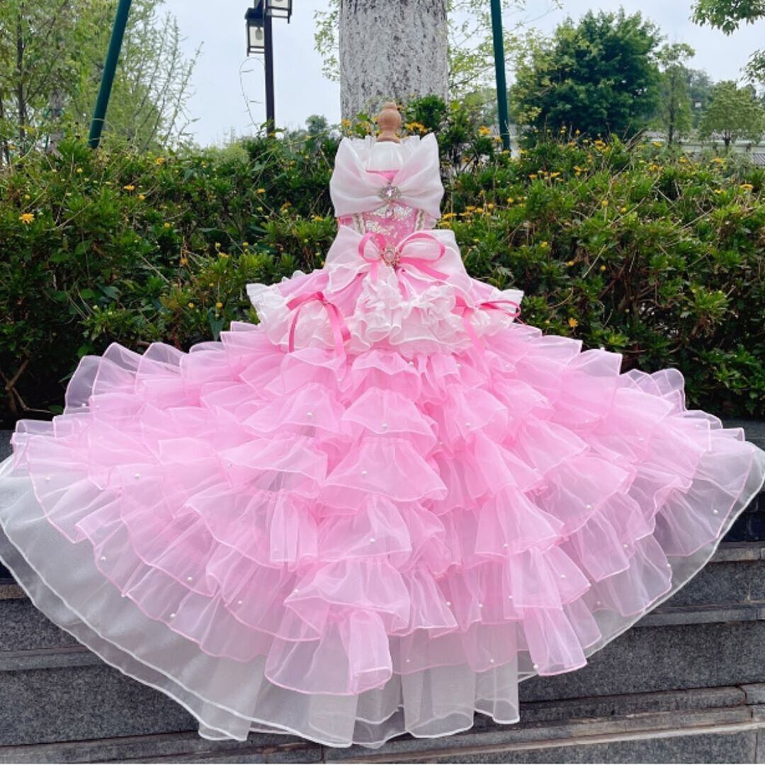 予約(海外ハンドメイド)【№B07212₋P】ローズピンク フェイクパール プリンセスドレス(2way)
