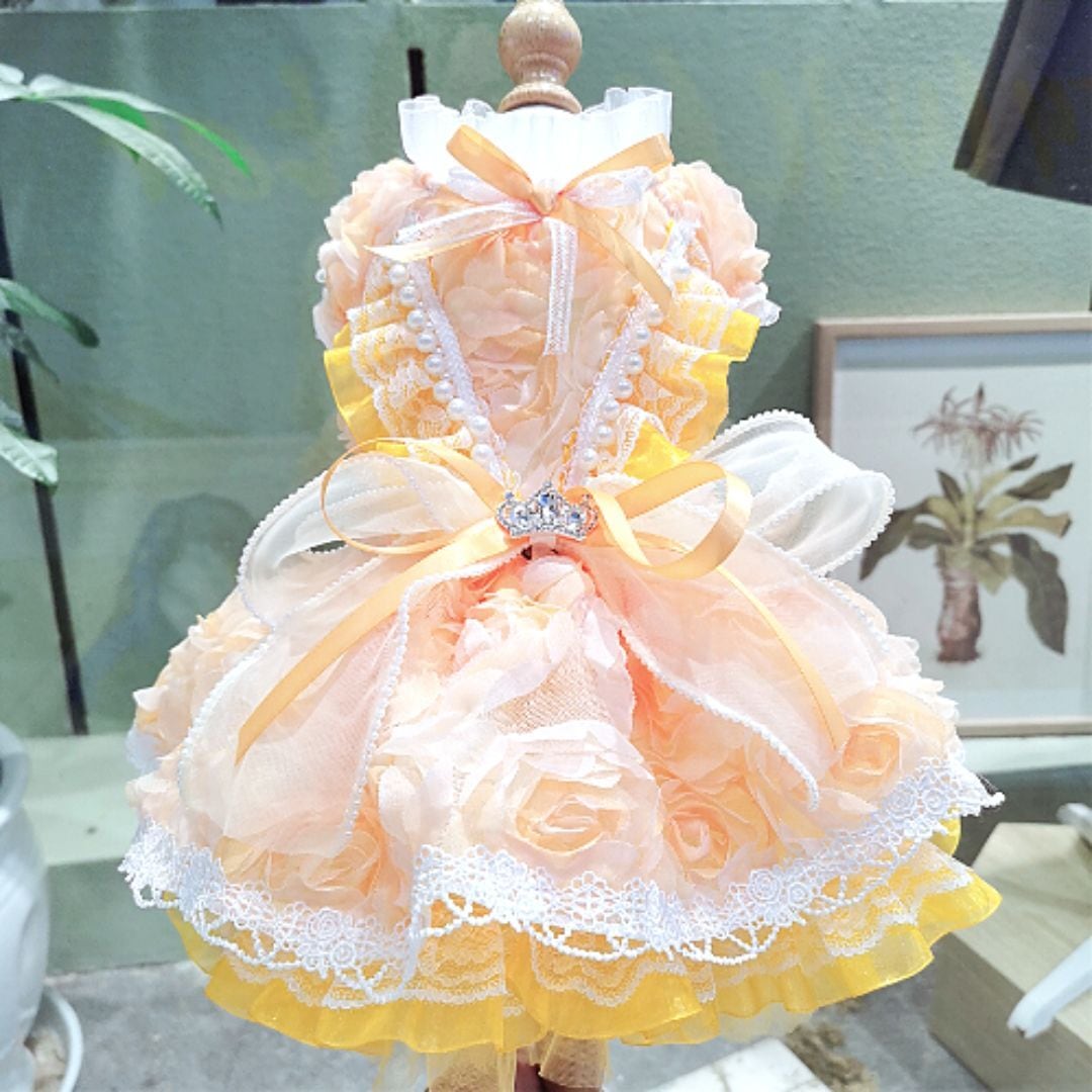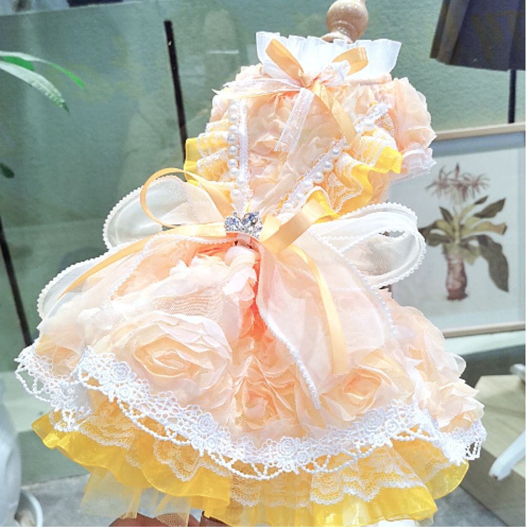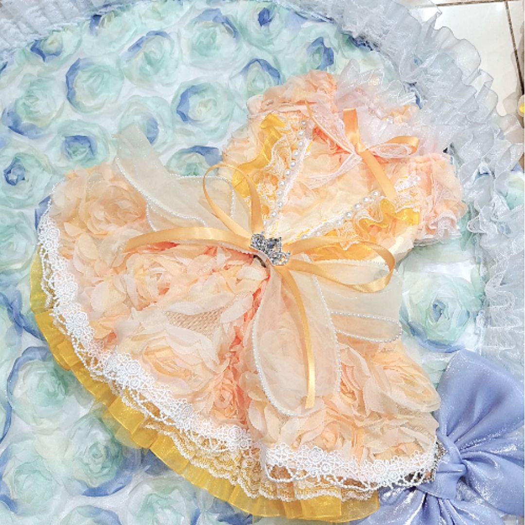 予約(海外ハンドメイド)【№B07258】フラワーモチーフ プリンセスドレス