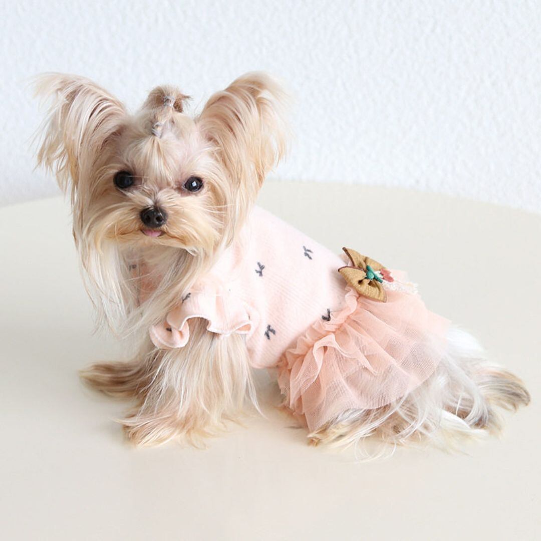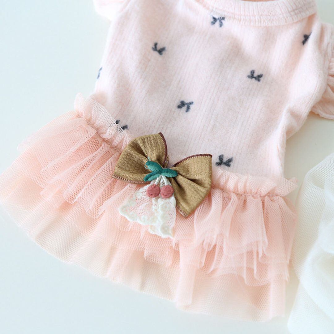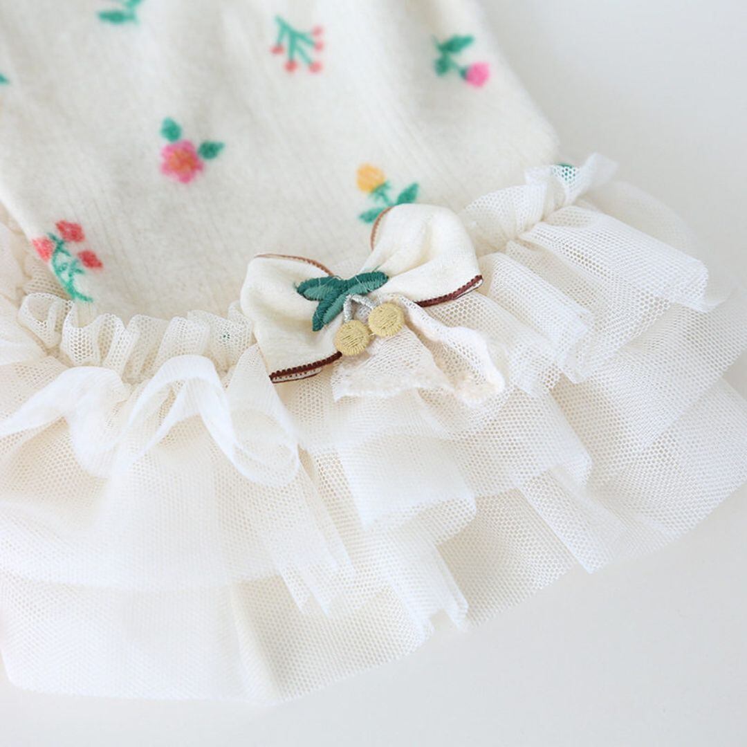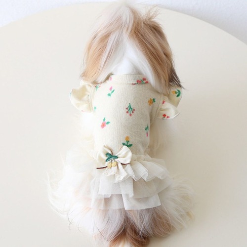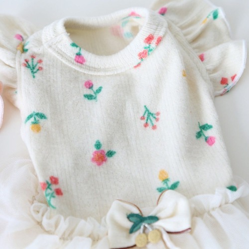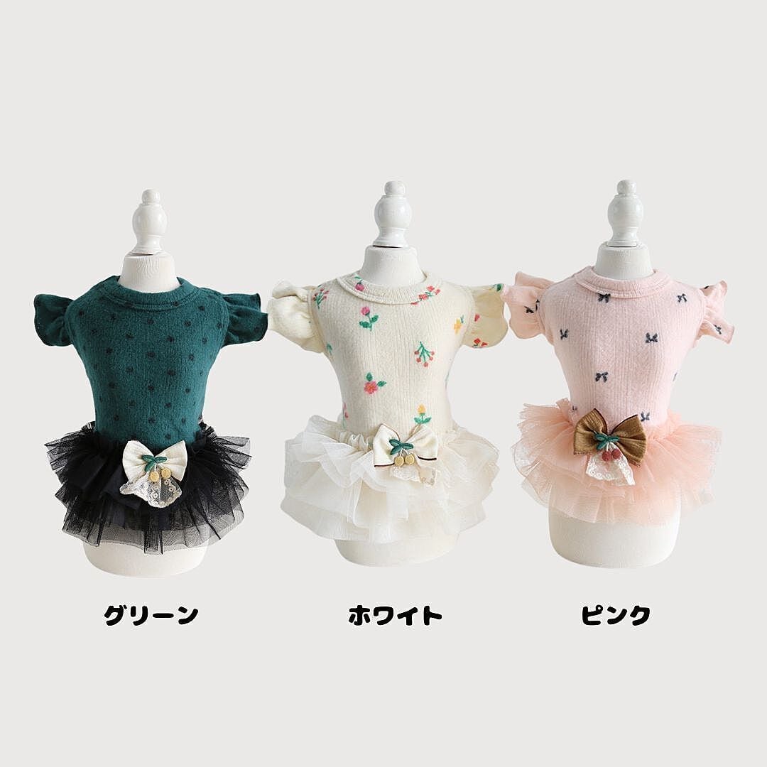 予約【№B07326】フライングスリーブ リボン柄・ドッド・フラワー柄 チュールフリルワンピ