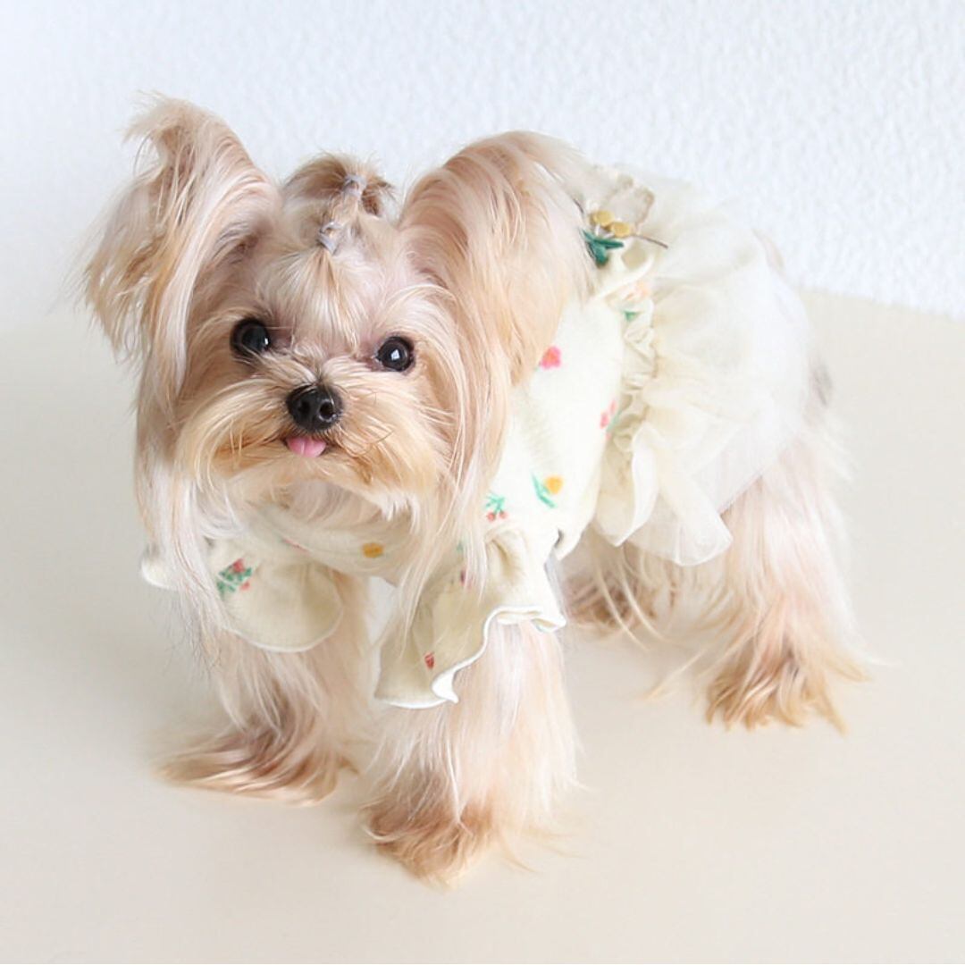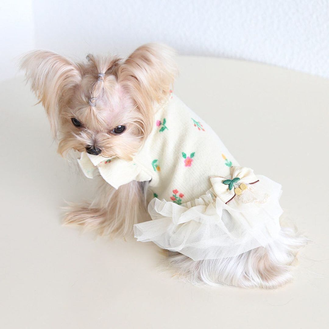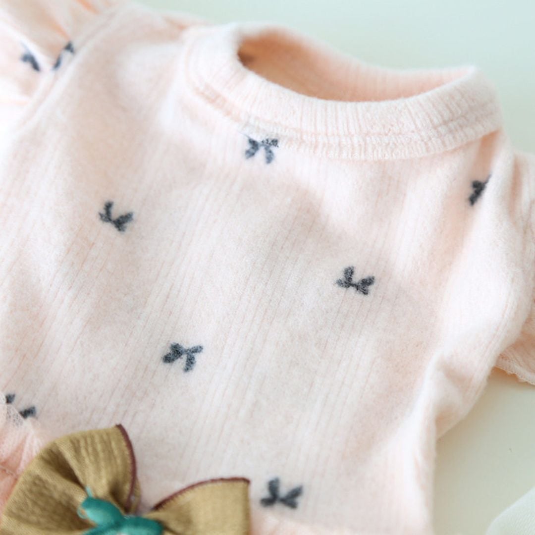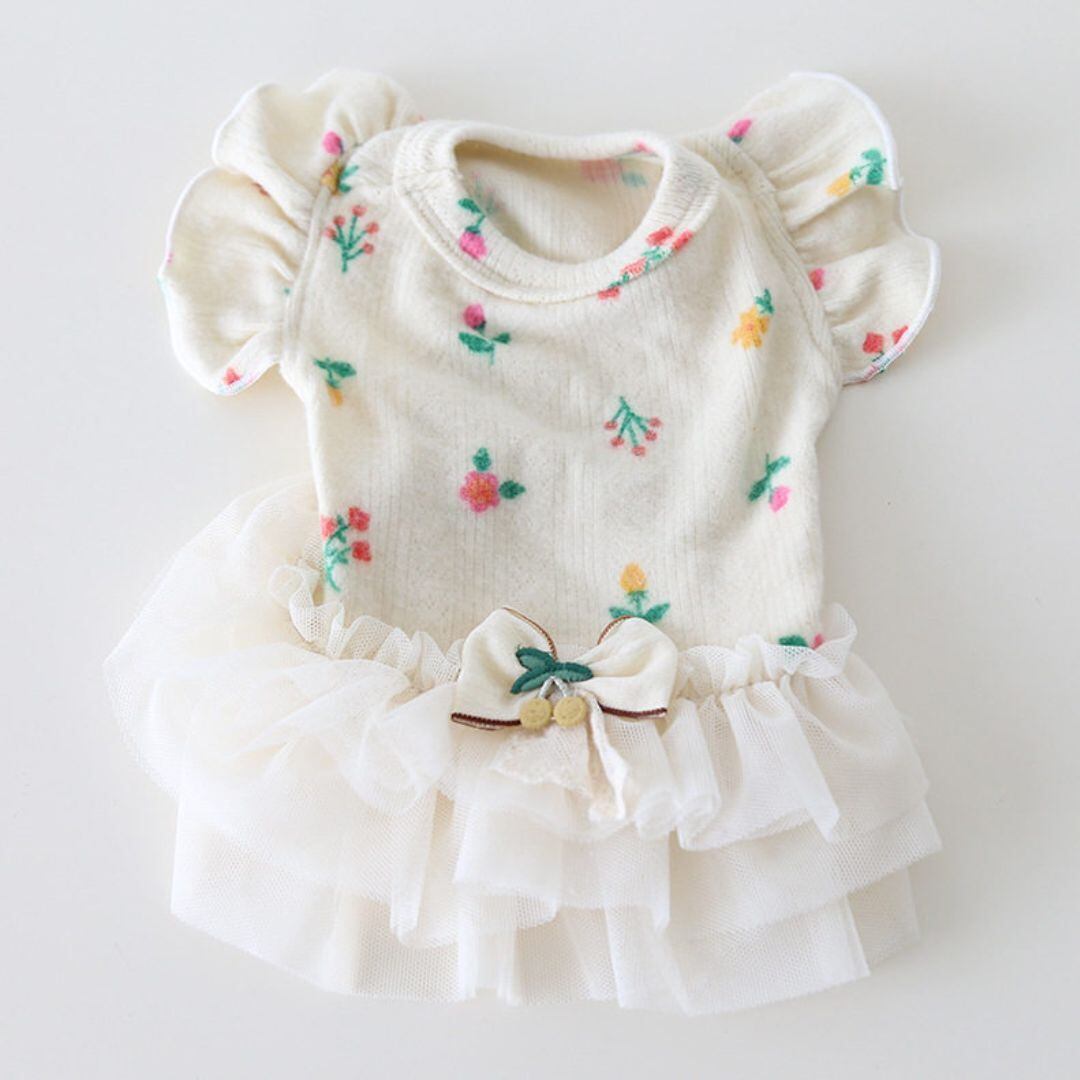予約【№B07326】フライングスリーブ リボン柄・ドッド・フラワー柄 チュールフリルワンピ