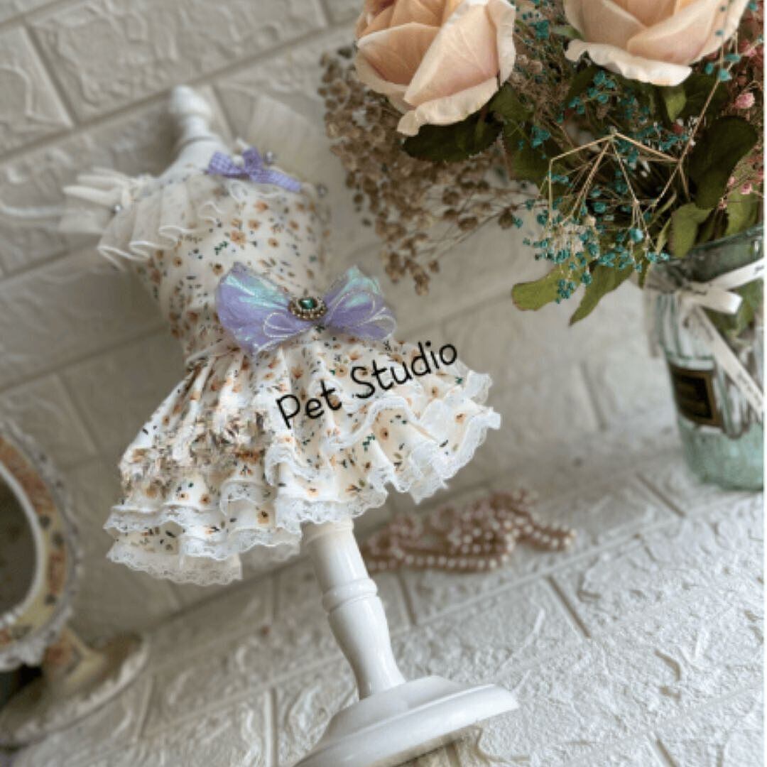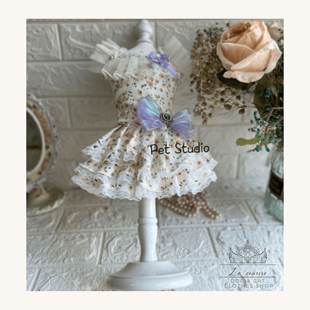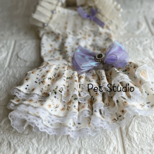 予約 海外ハンドメイド 受注製作品【№B07359】フラワー柄 コットン プリンセスワンピ(バレッタ付き)