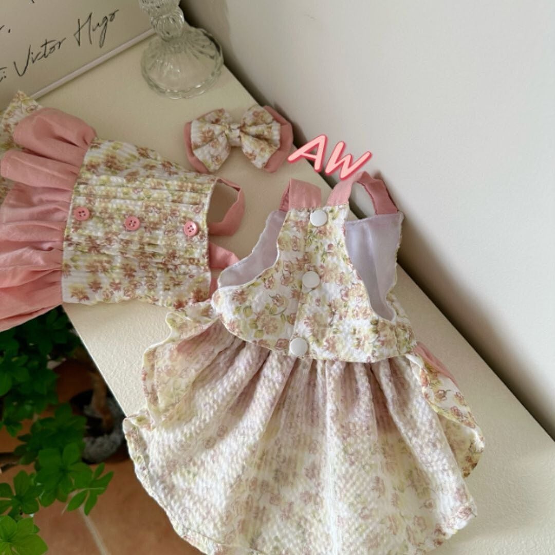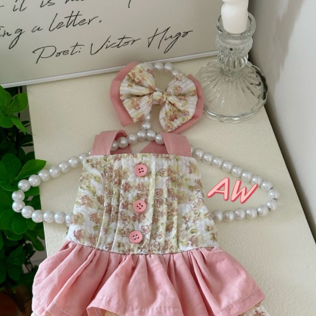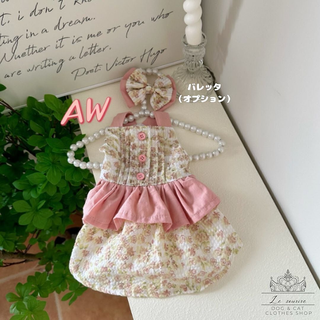 予約【№B07369】 ロータスピンク 小花柄ワンピ(バレッタ:オプション)