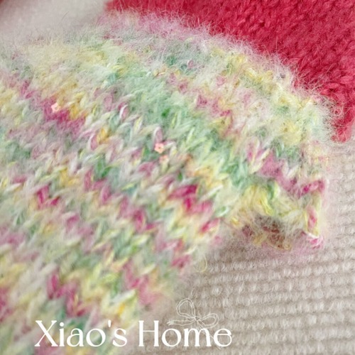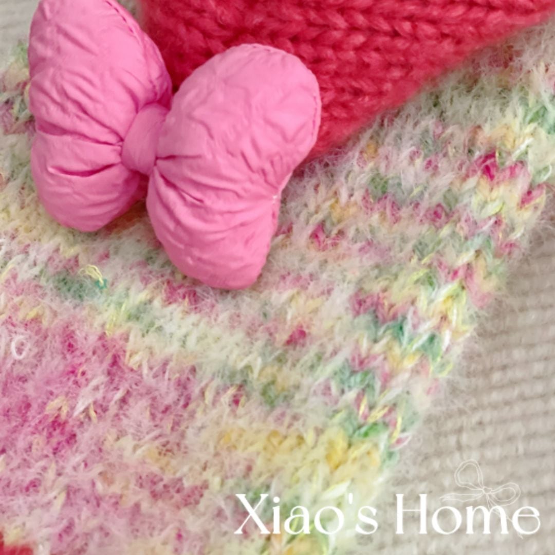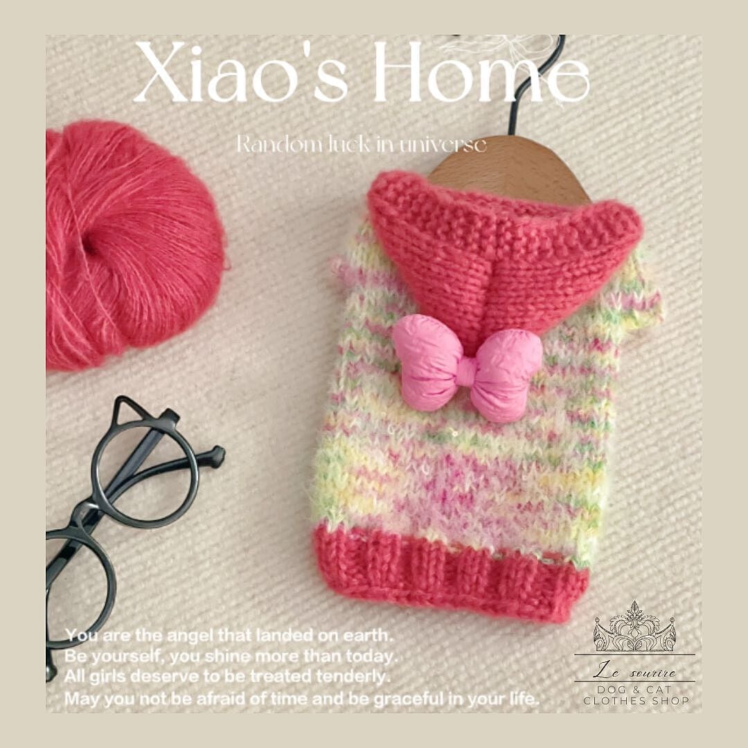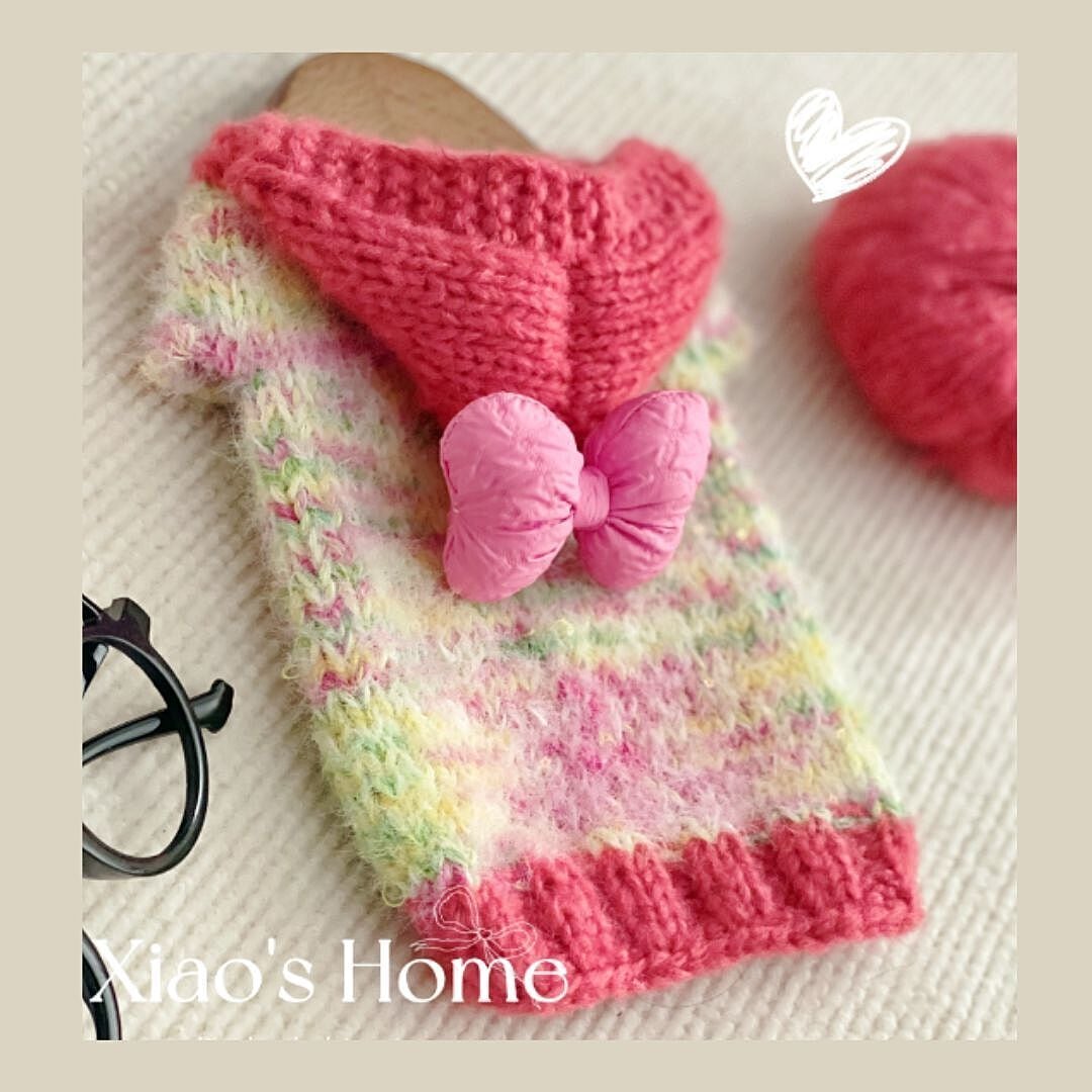 予約(海外ハンドメイド)【№B07468】リボン付 フード付き 手編みニット