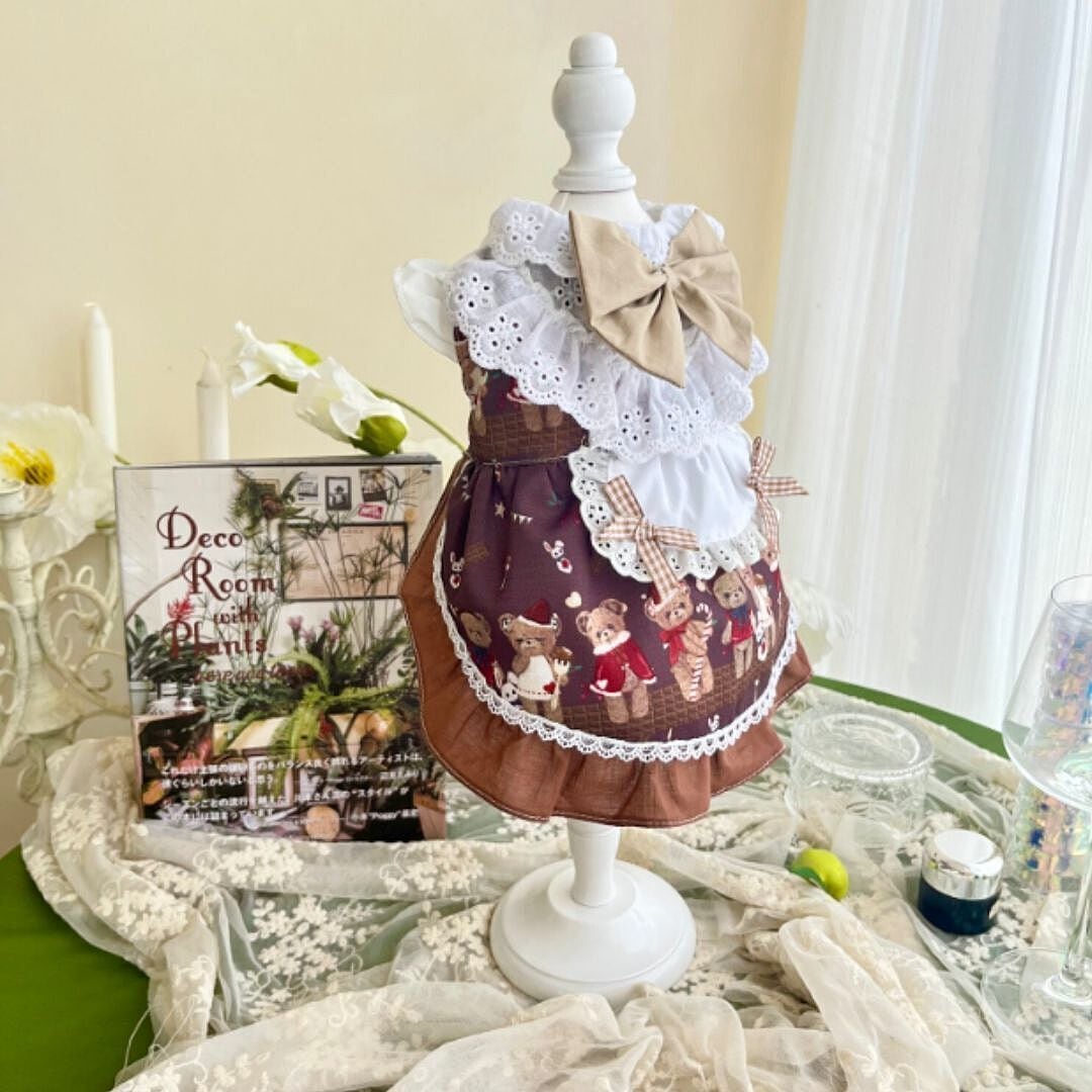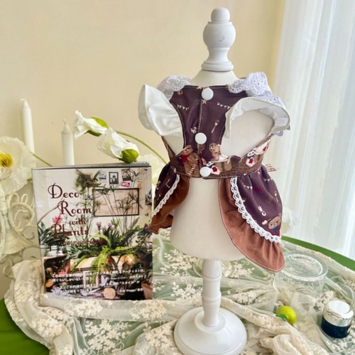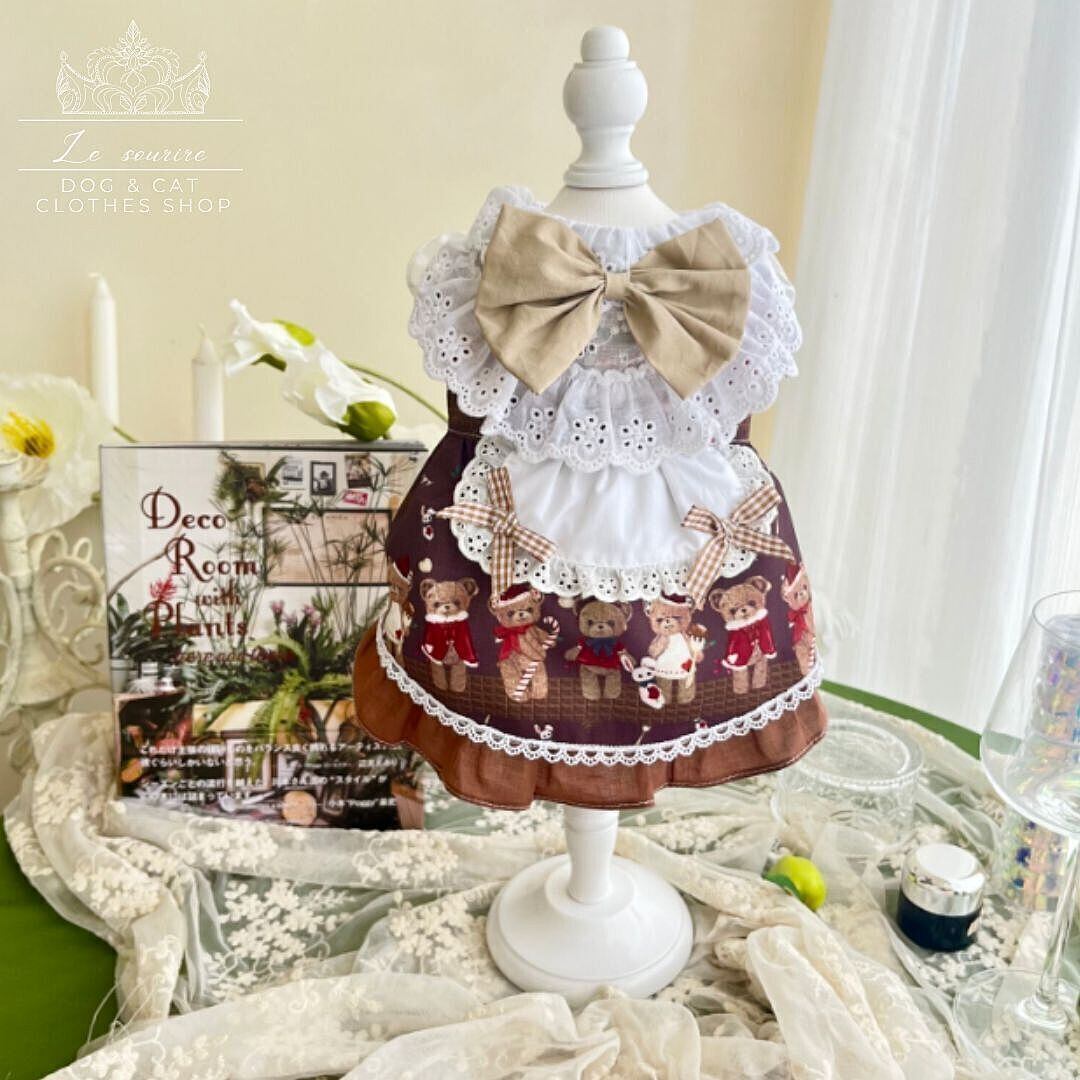 “ベア柄エプロンワンピ”