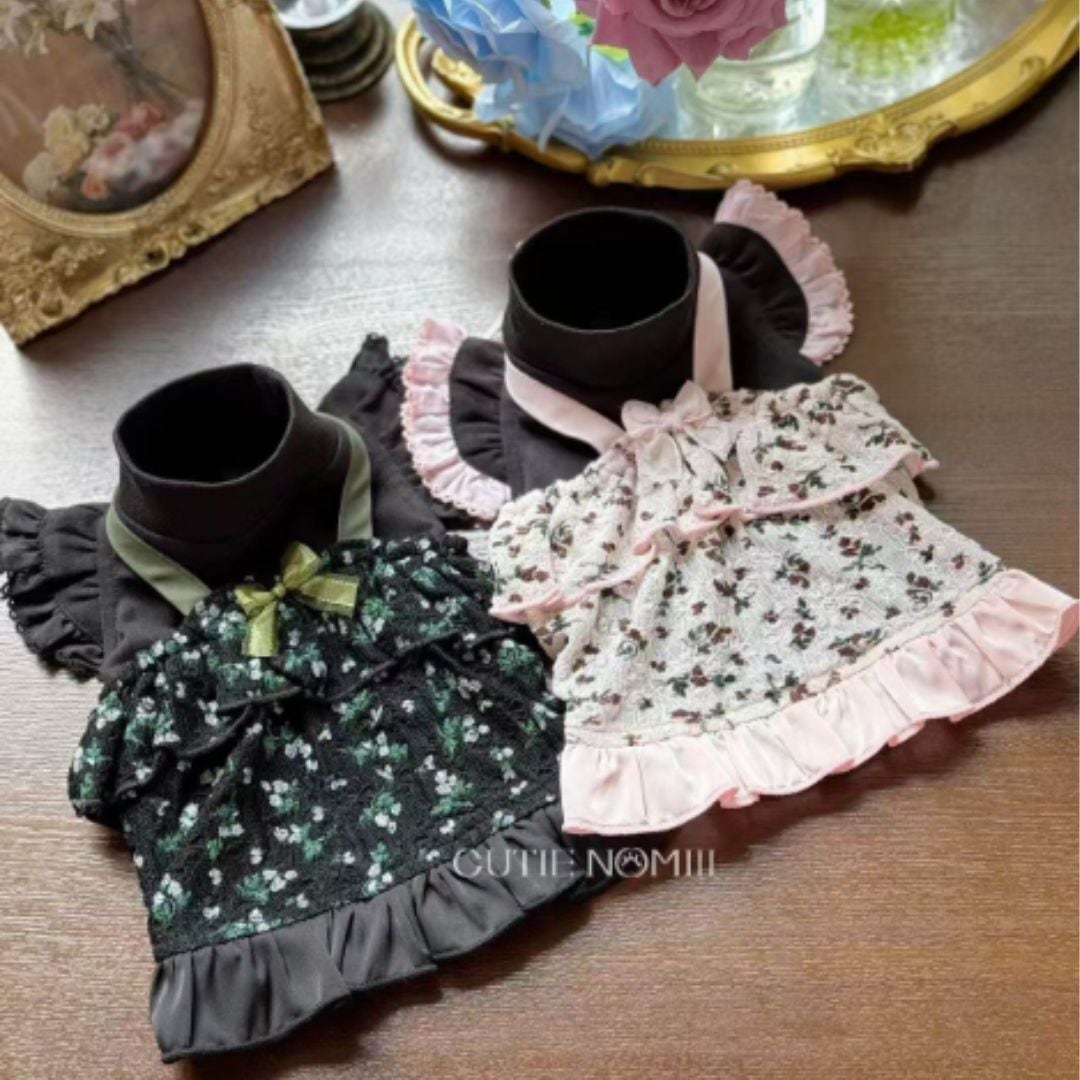 予約【№B7503-1】ダブルフリル × レース縁取り ハイネック トップス(6カラー)