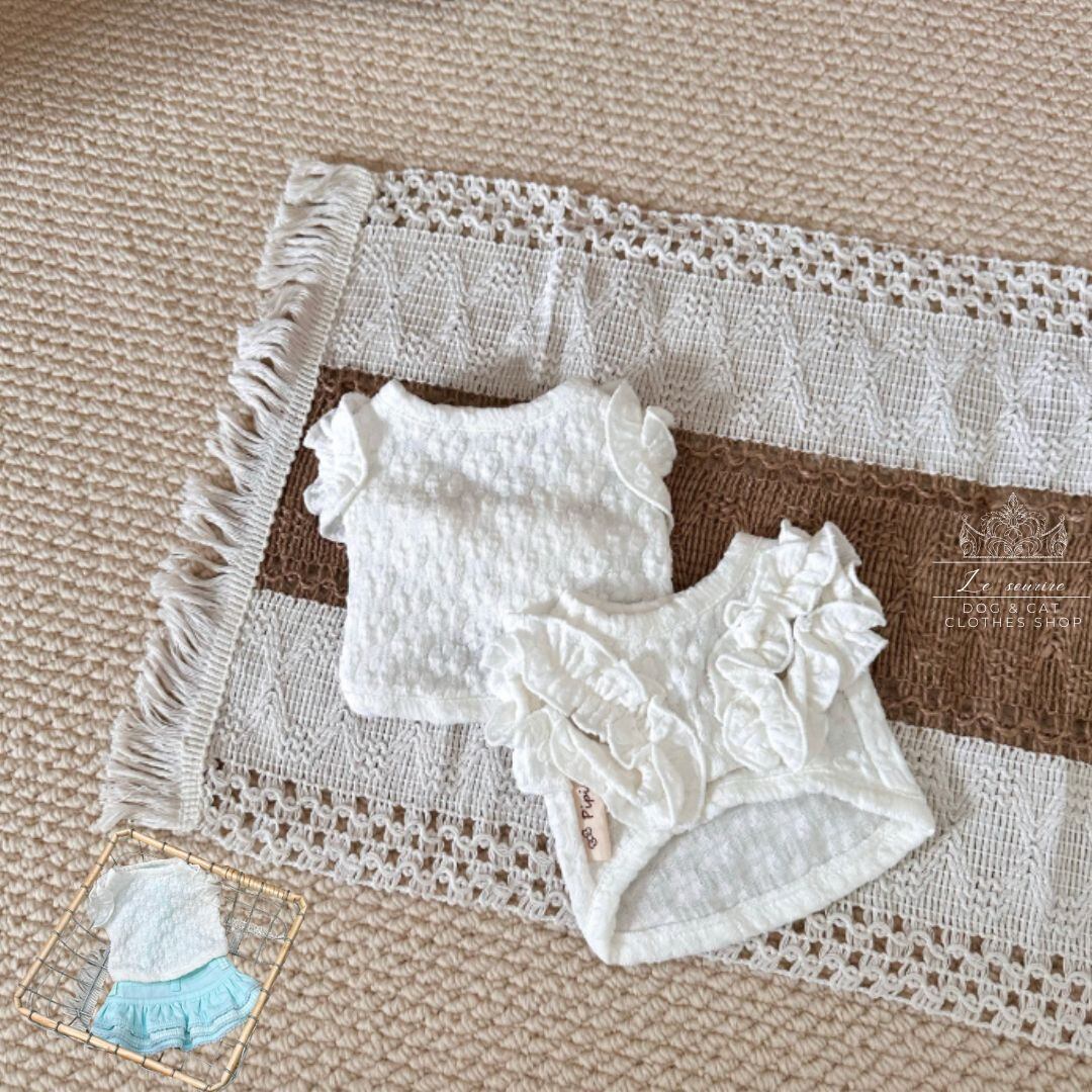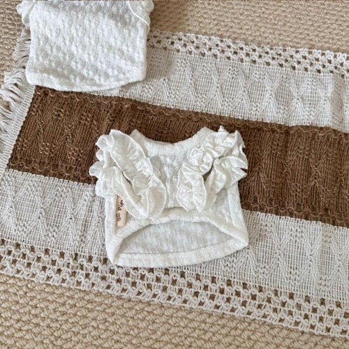 小さな花びらのように重なり合うフリルは、