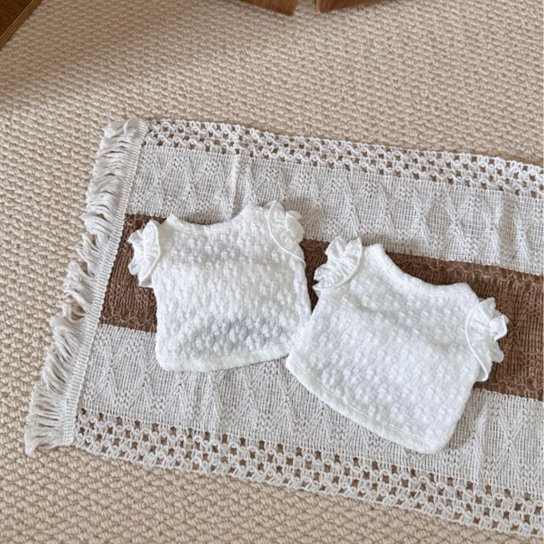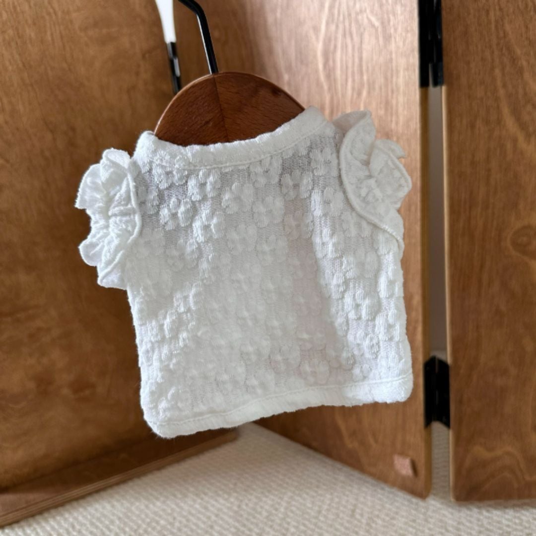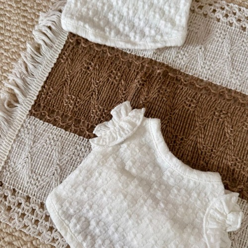 予約【№B07486】立体フリルスリーブ ポコポコ素材 クロップド丈 トップス