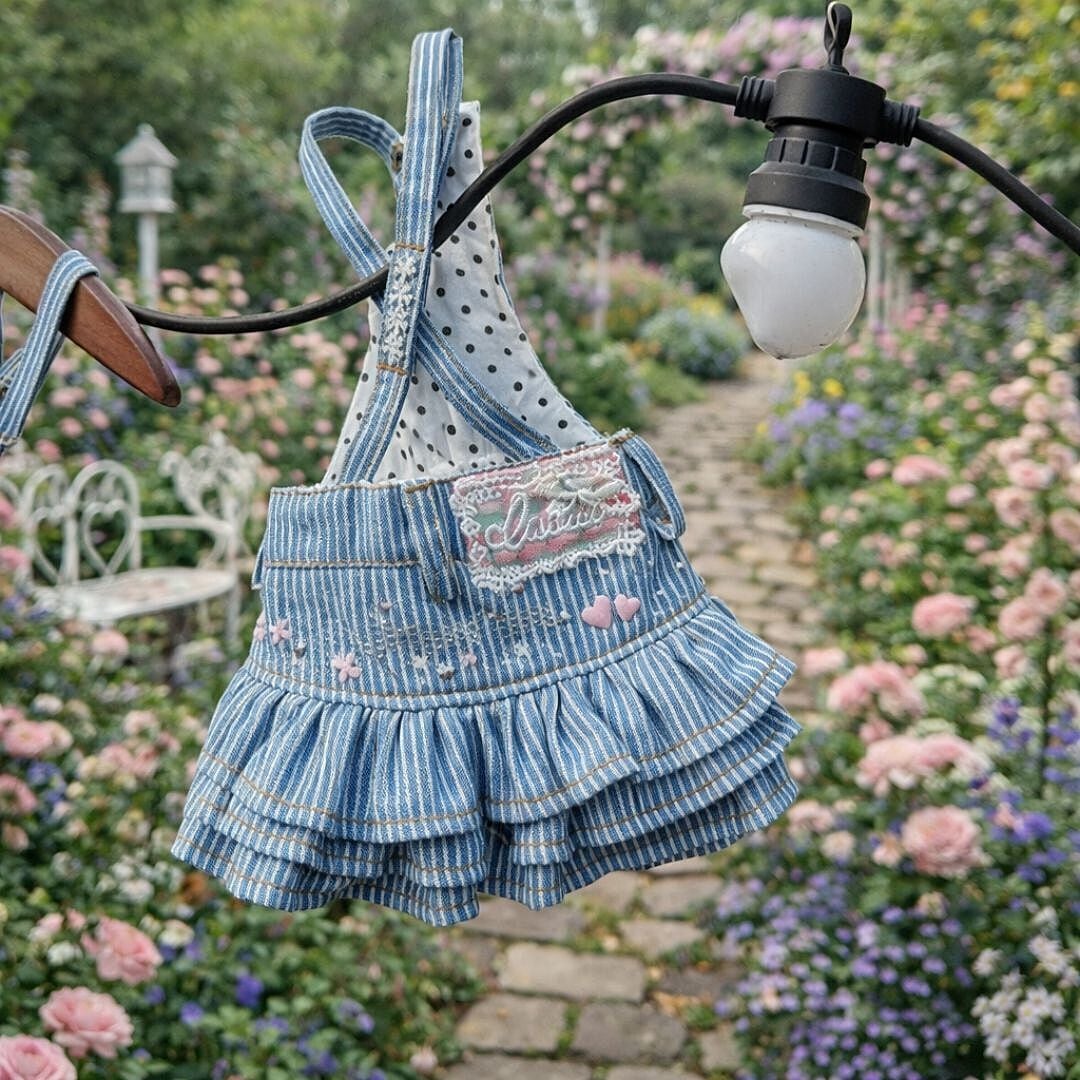 予約【№B07682】ストライプ柄デニム スリングスカート(①ハートAライン②ティアードフリル)