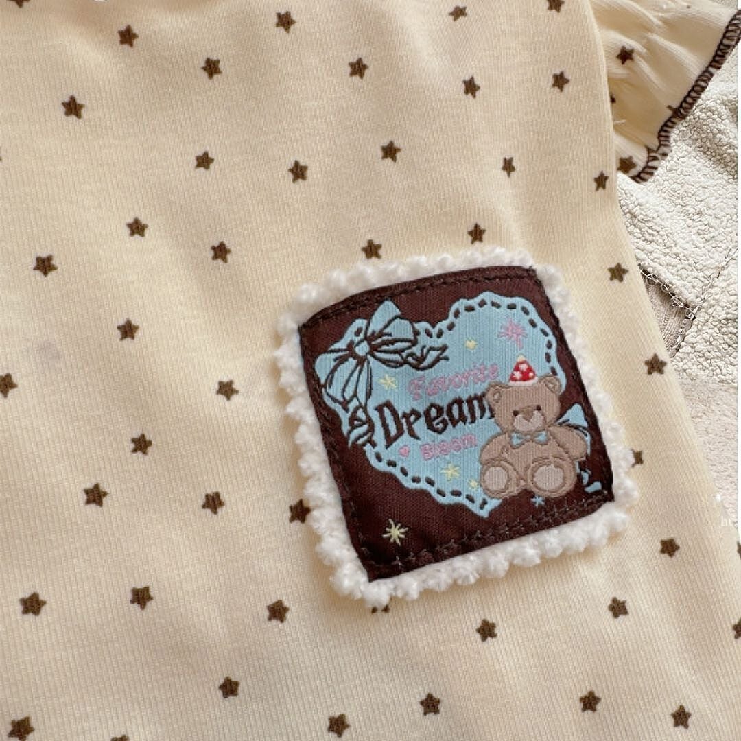 ナチュラルなスタードット柄と相性の良い、ほっこりとしたデザインです。