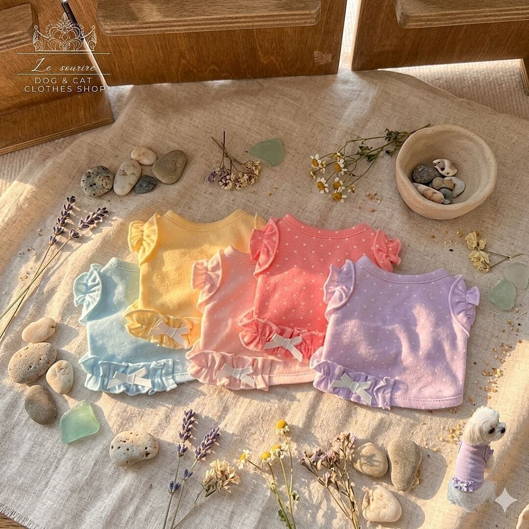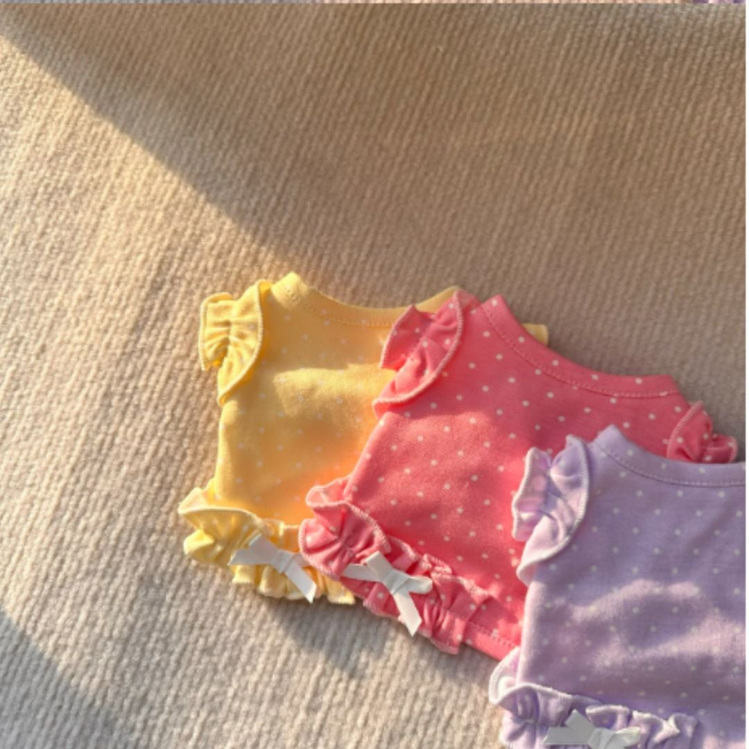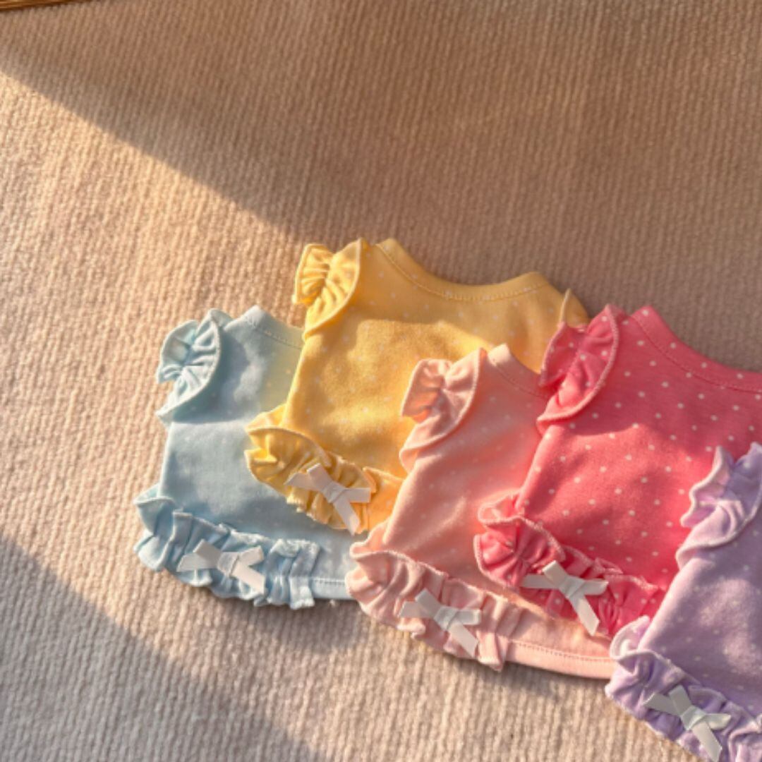 予約【№B07484】キャンディーカラー ドット クロップド丈トップス(5カラー)
